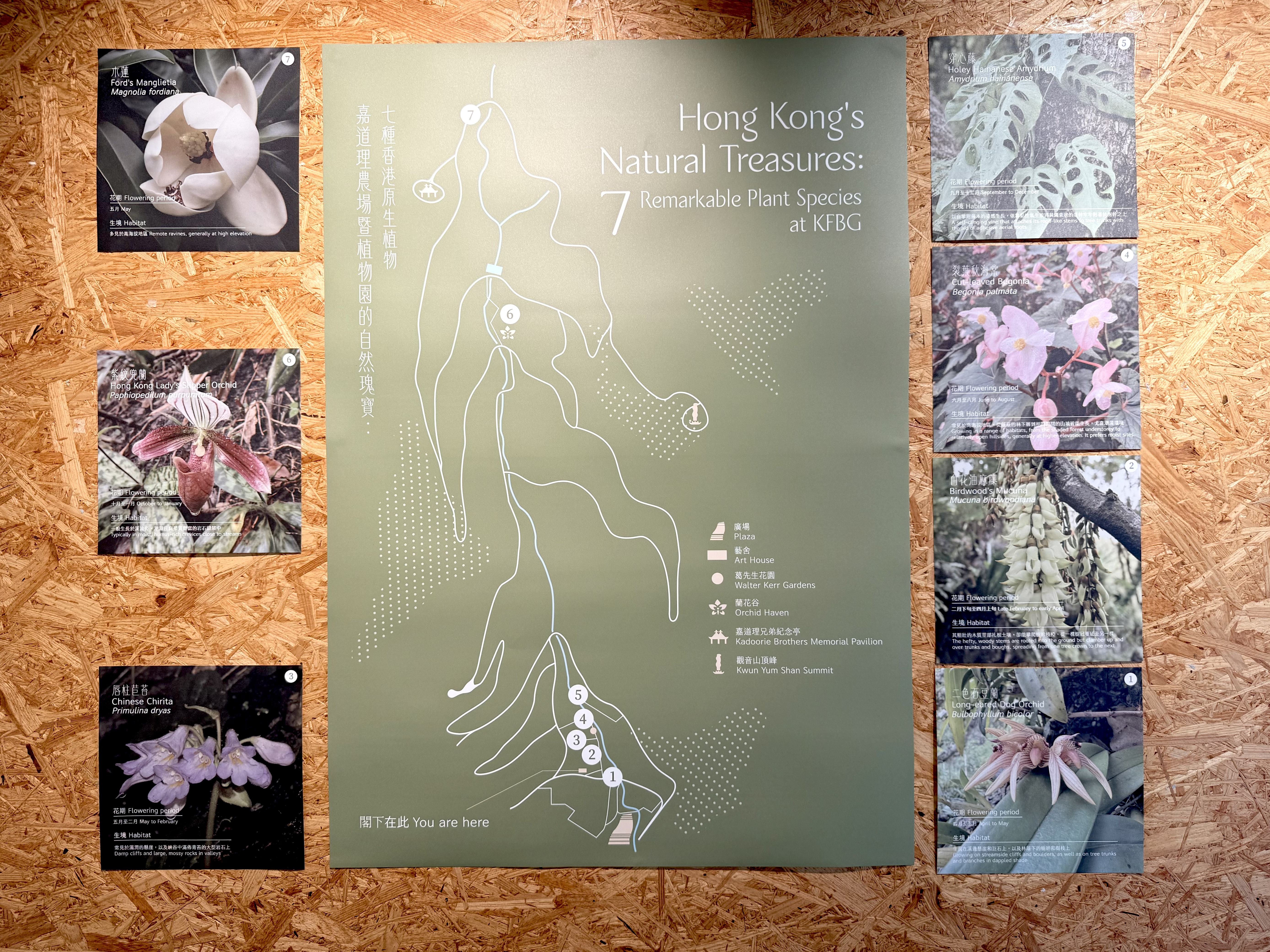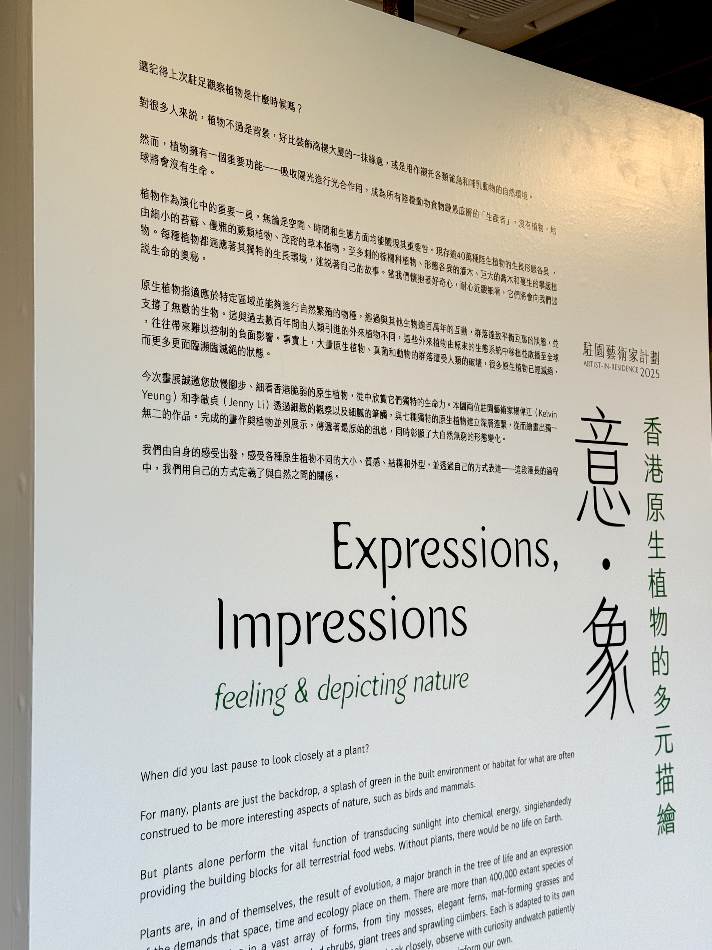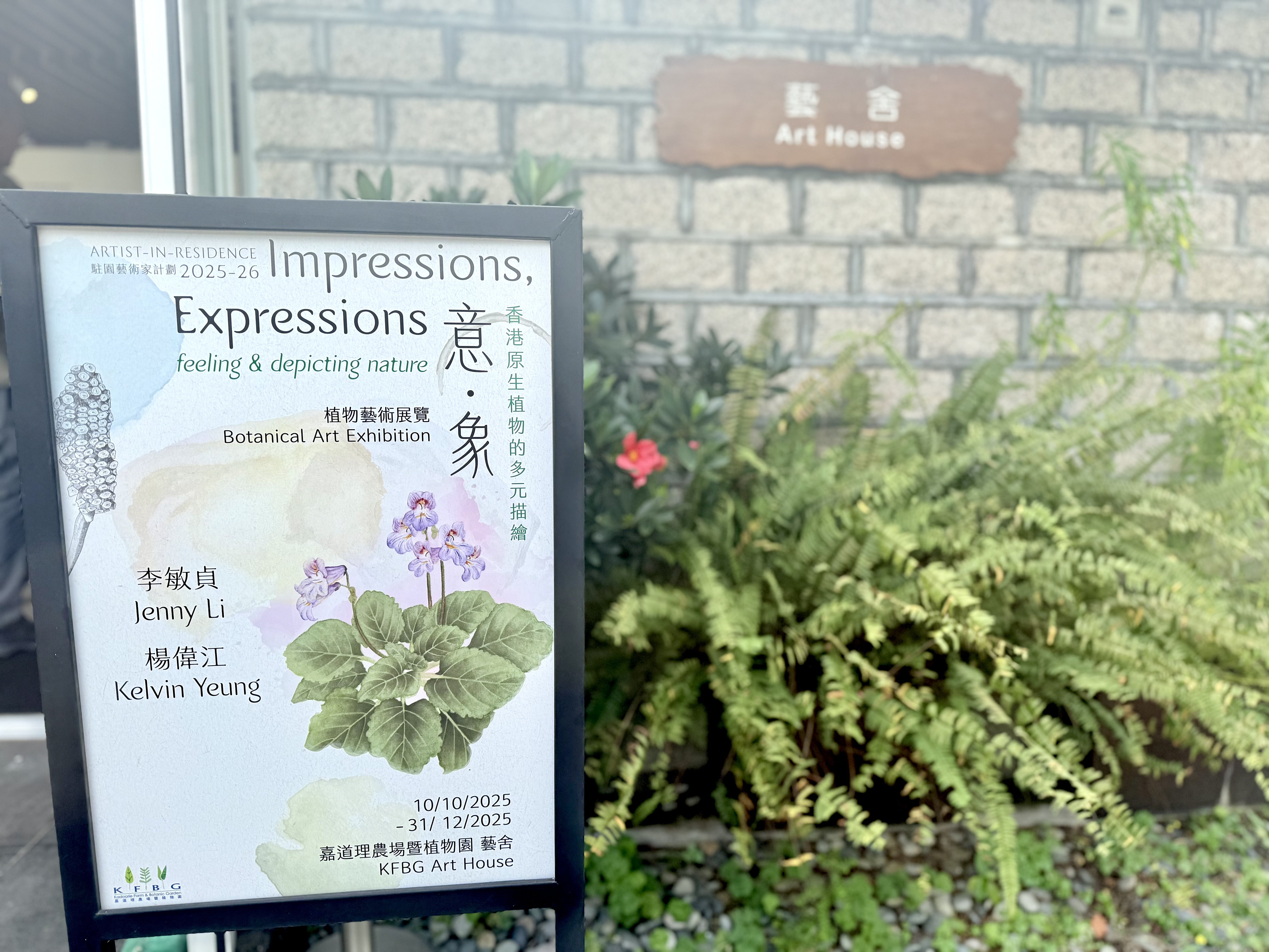 嘉道理本年度駐園藝術家李敏貞與楊偉江,以藝術作品呈現七種具代表性的香港原生植物,並創新性地將植物畫作與植物本體一同展出,供觀眾細緻觀察每種植物及其藝術映像,亦透過植物保育與藝術創作的巧妙結合,喚起公眾對本土生態的關注。