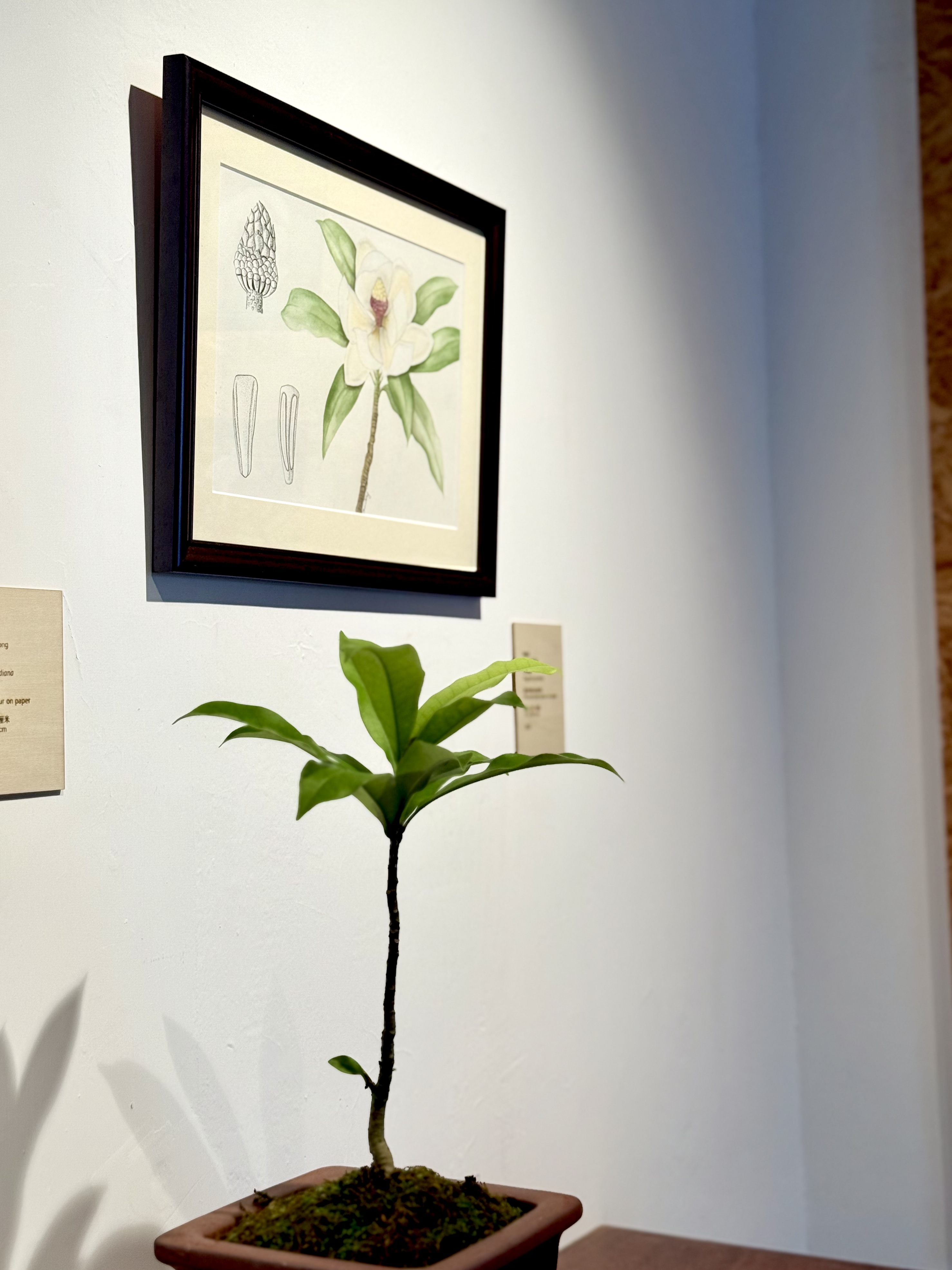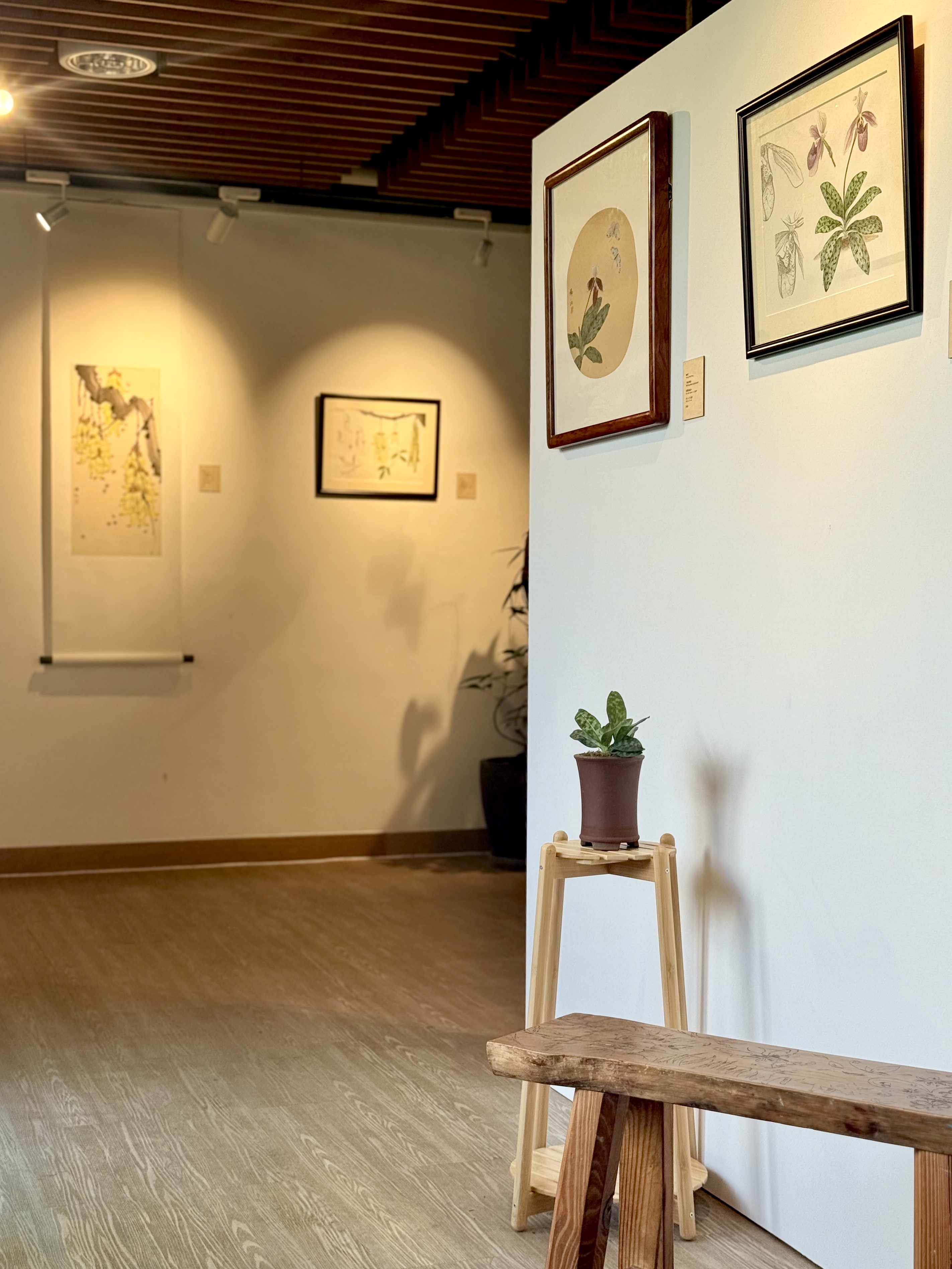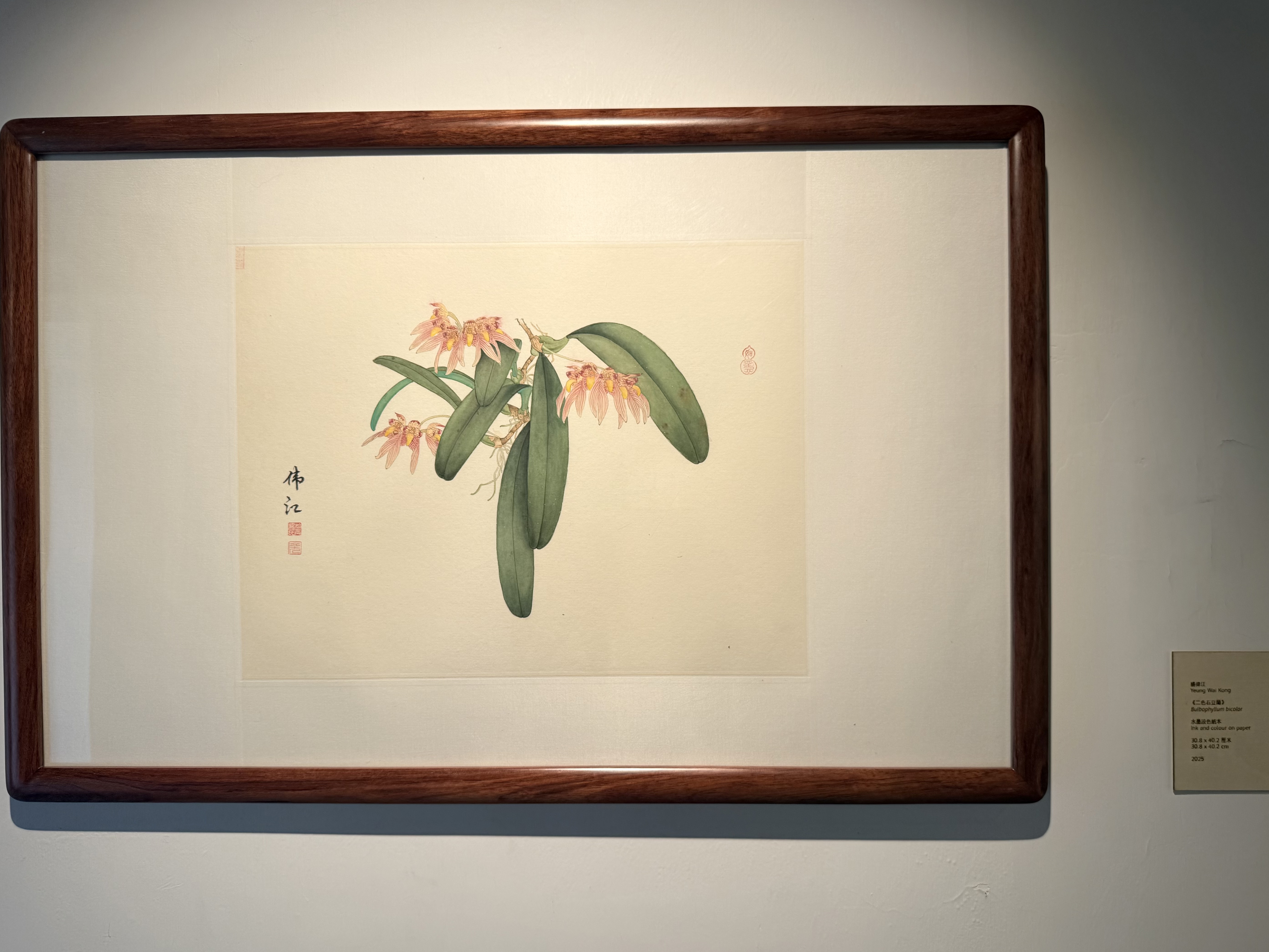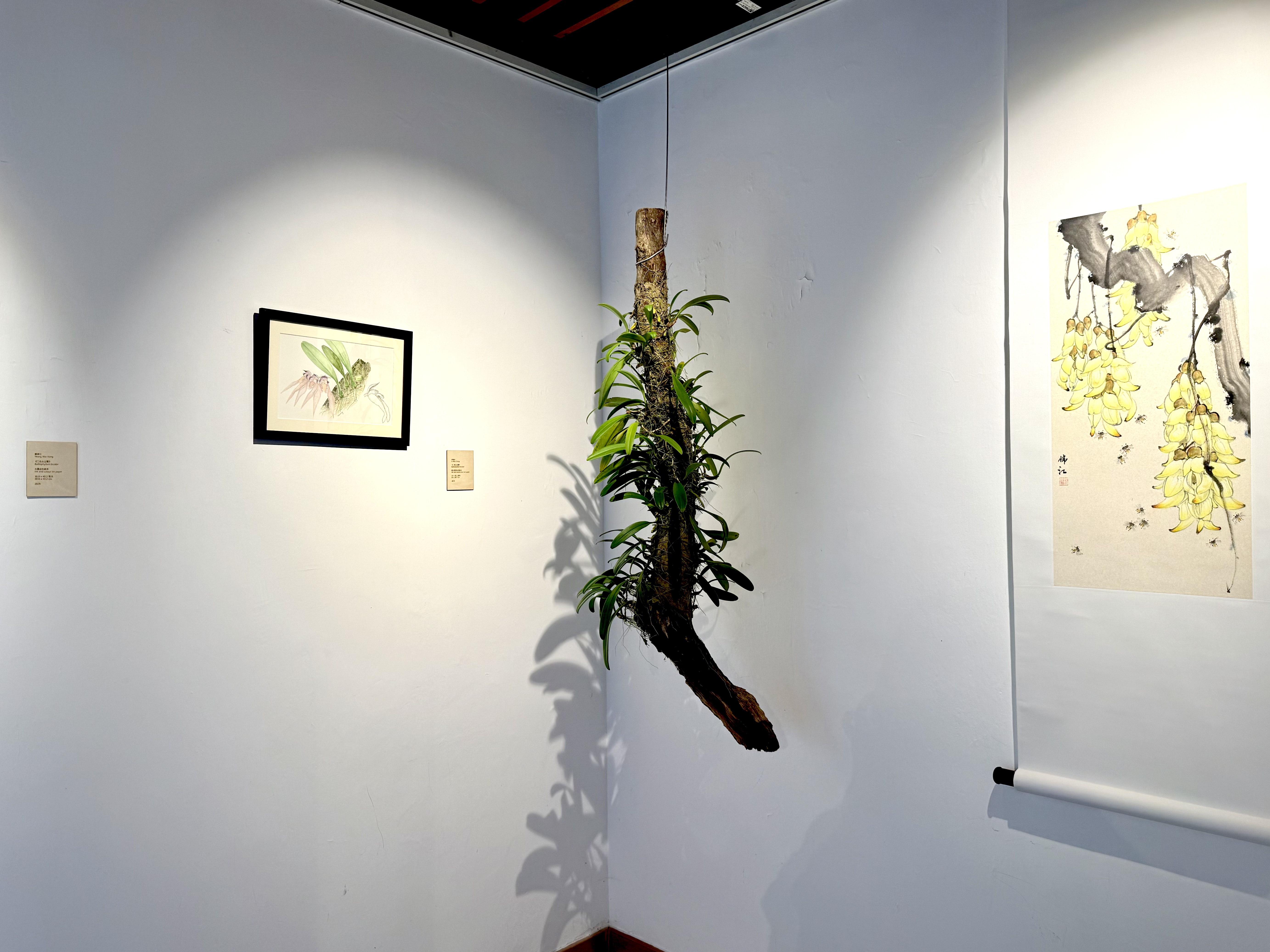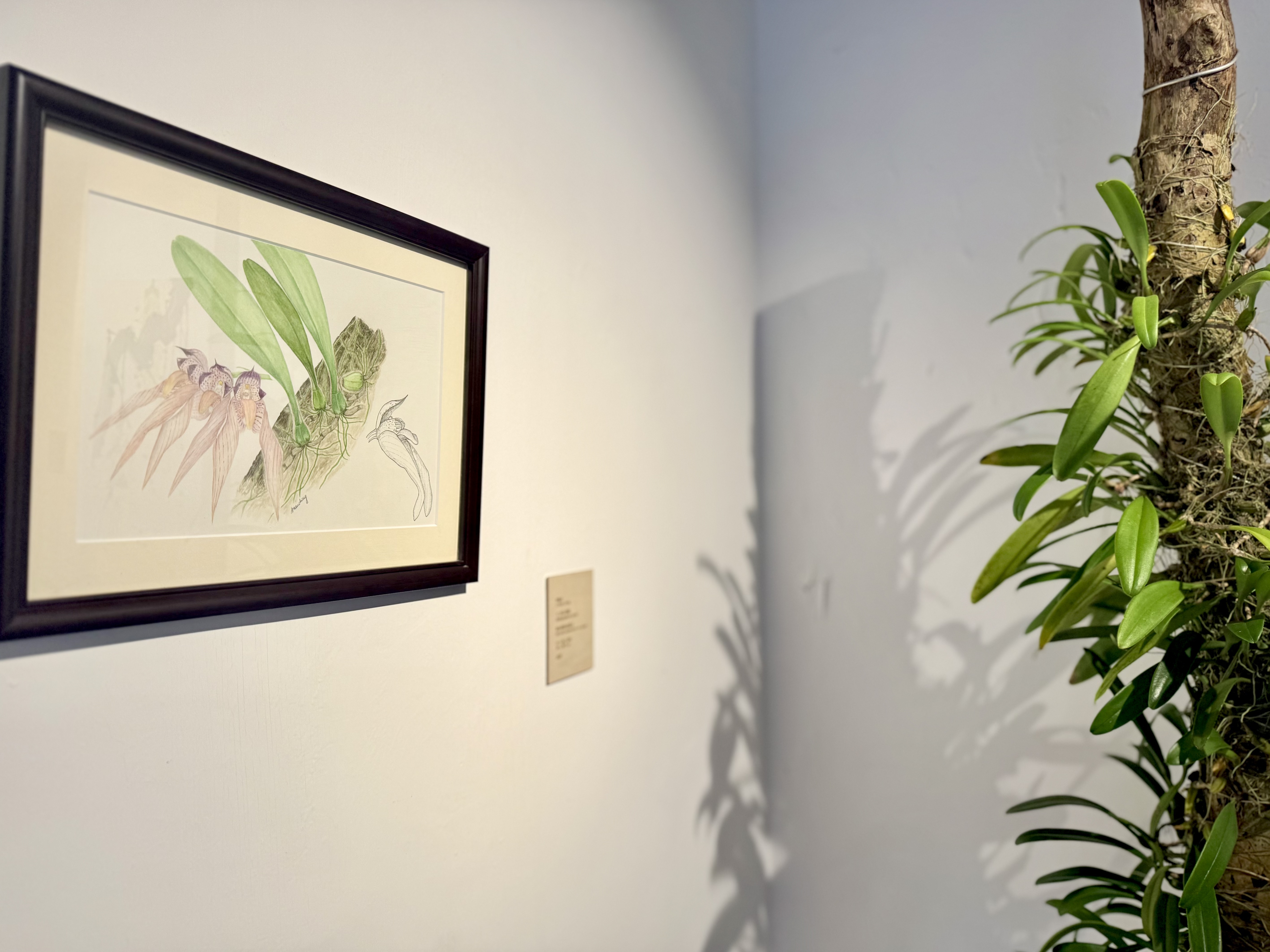 楊偉江同李敏貞聚焦二色石豆蘭、紫紋兜蘭、木蓮、穿心藤、唇柱苣苔、裂葉秋海棠以及白花油麻藤,透過細緻觀察及細膩筆觸與這七種植物建立深層連繫,創作出獨一無二的繪畫作品。