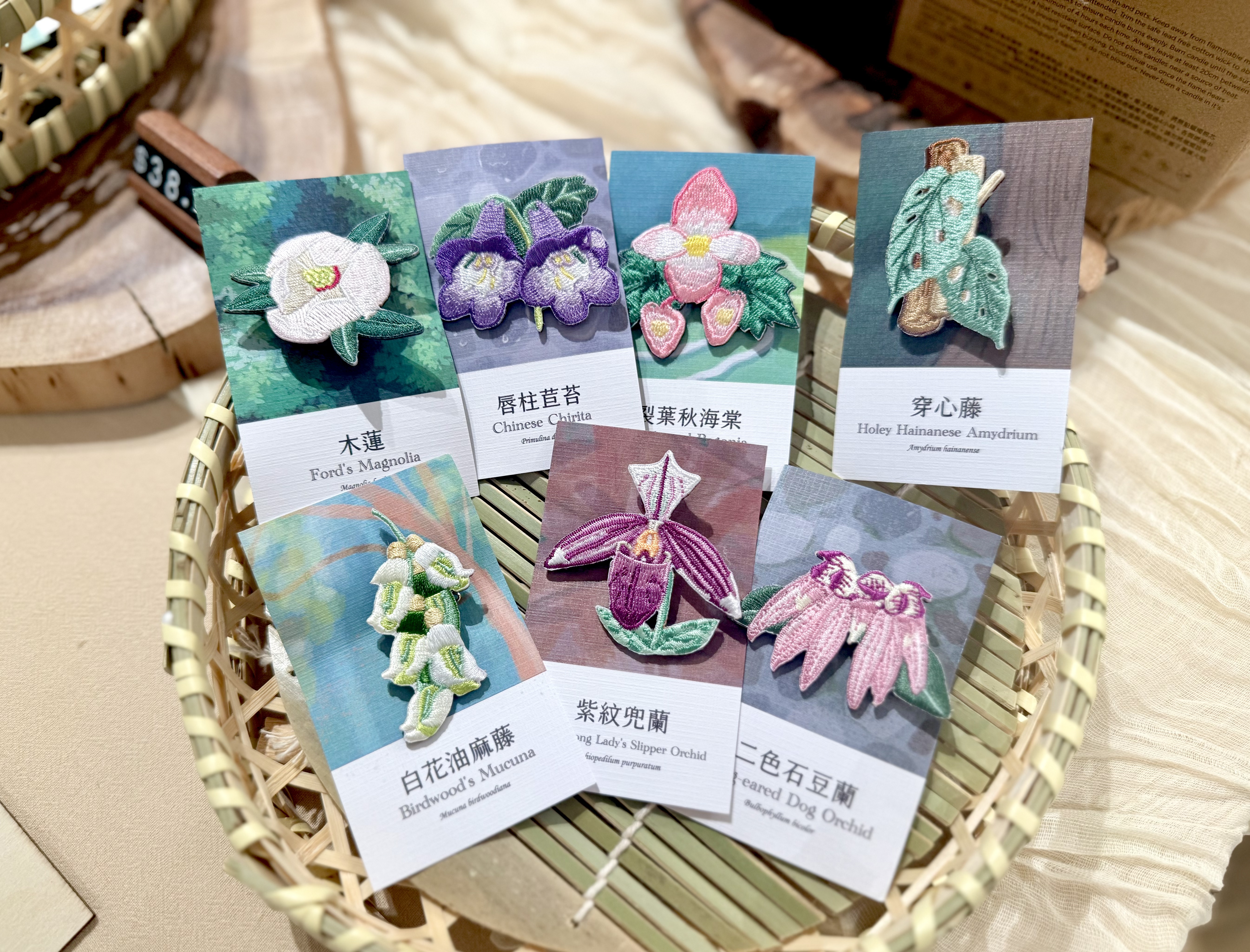 為深化公眾對植物、藝術及保育的理解,嘉道理在展覽期間特別舉辦限定導賞活動,每位參加者將隨機獲贈一款以展覽植物為靈感設計的限量版「香港原生植物紀念刺繡別針」。