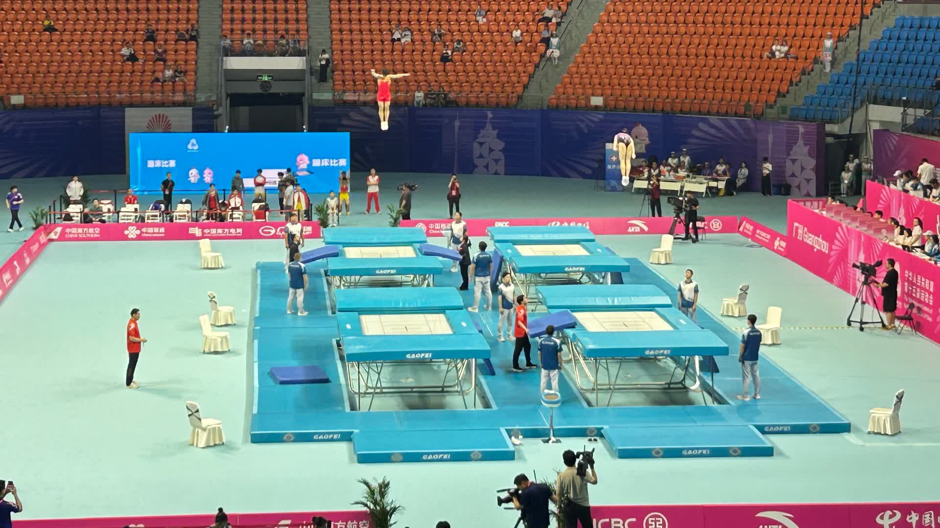 十五運會蹦床項目有朱雪瑩、王梓賽、嚴浪宇、高磊等奧運會、世錦賽、亞運會、全運會金牌選手參賽,賽場星光熠熠。根據賽程,10日將進行團體、個人預賽,11日下午將產生男子、女子團體冠軍,10月12日下午則將產生男子、女子的個人冠軍。