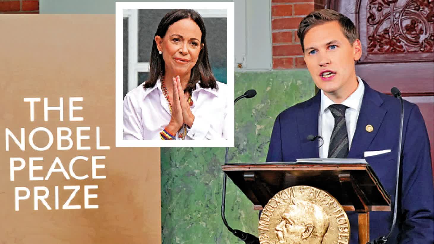 大公報綜合報道,挪威諾貝爾委員會10日宣布,2025年諾貝爾和平獎得主是委內瑞拉反對派領袖瑪麗亞·科里娜·馬查多,而不是多次公開表示渴望獲獎的美國總統特朗普。白宮在社交媒體上批評諾貝爾委員會「將政治置於和平之上」。諷刺的是,美國長期扶植委內瑞拉反對派,圖謀推翻馬杜羅政府。今年1月,特朗普曾在社媒發文支持馬查多。有分析指出,特朗普可能因沒能獲獎而報復挪威,採取加徵關稅等措施,甚至可能宣布挪威為「敵國」。