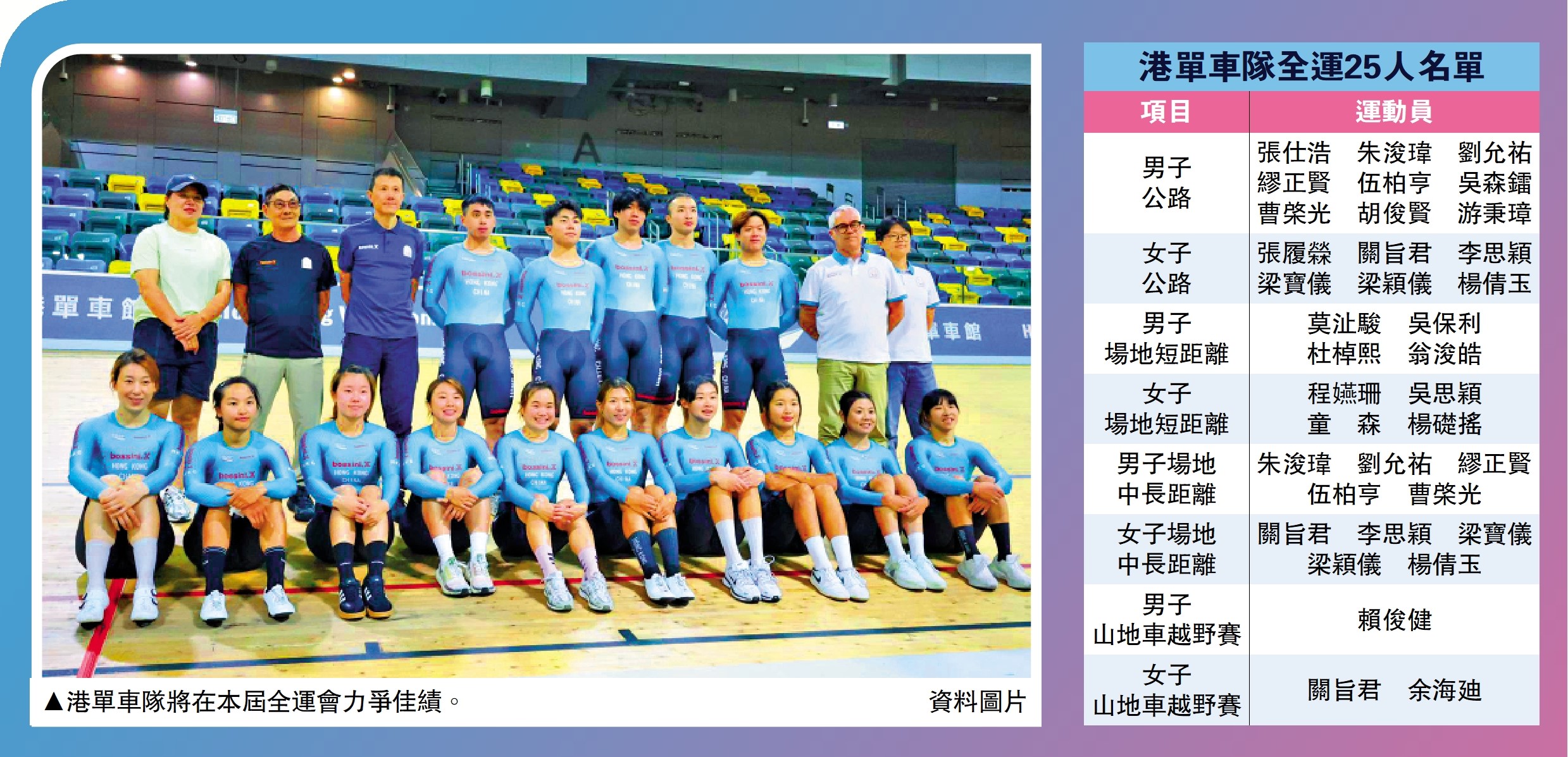 這些新一代車手將藉着本屆全運吸取大賽經驗,提升自身實力,並在未來傳承港單車隊的輝煌戰績。