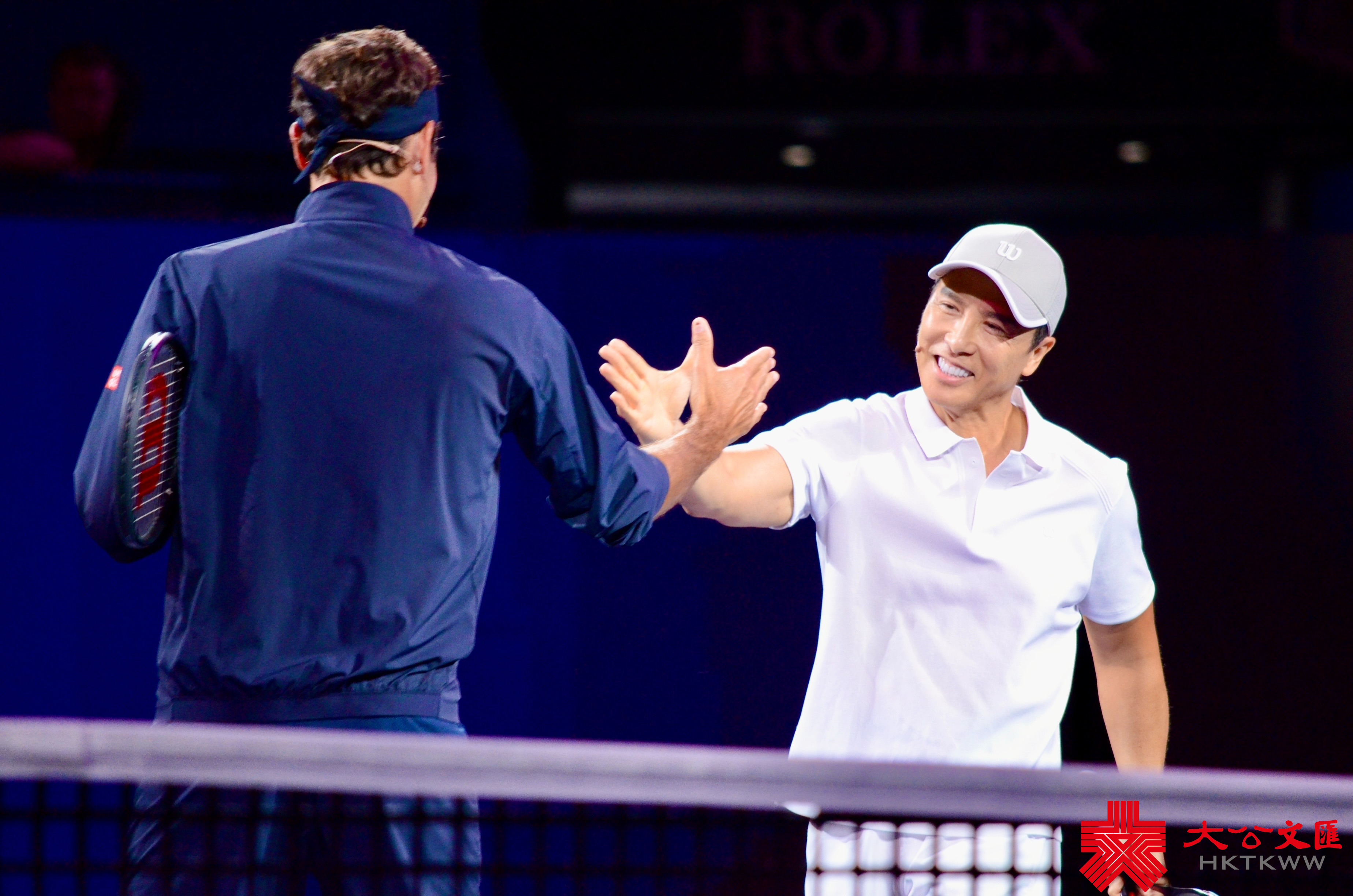 (大公文匯網 記者 夏微 上海報道)10日晚間,2025上海勞力士大師賽男單四分之一決賽最後一場結束後,令人期待的「費德勒超級摯友之夜」上演。甄子丹、吳磊、鄭潔受邀到場與費德勒進行雙打秀。吳迪則作為裁判參與其中。