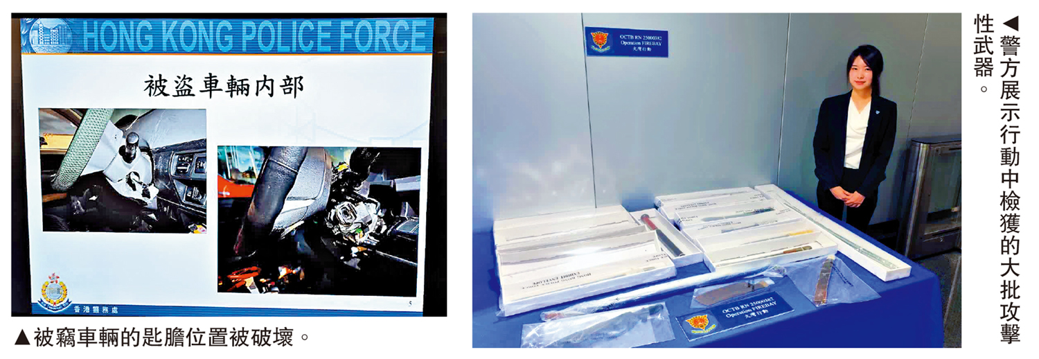 (大公報記者 余風)警務處打擊黑幫絕不手軟!警方搗破一個涉及偷車及窩藏武器的黑社會團夥,拘捕6人,包括該團夥的骨幹成員,並檢獲6輛私家車。相關人士暫時被扣查,警方亦正通緝該團夥其餘成員,並積極將其緝拿歸案。