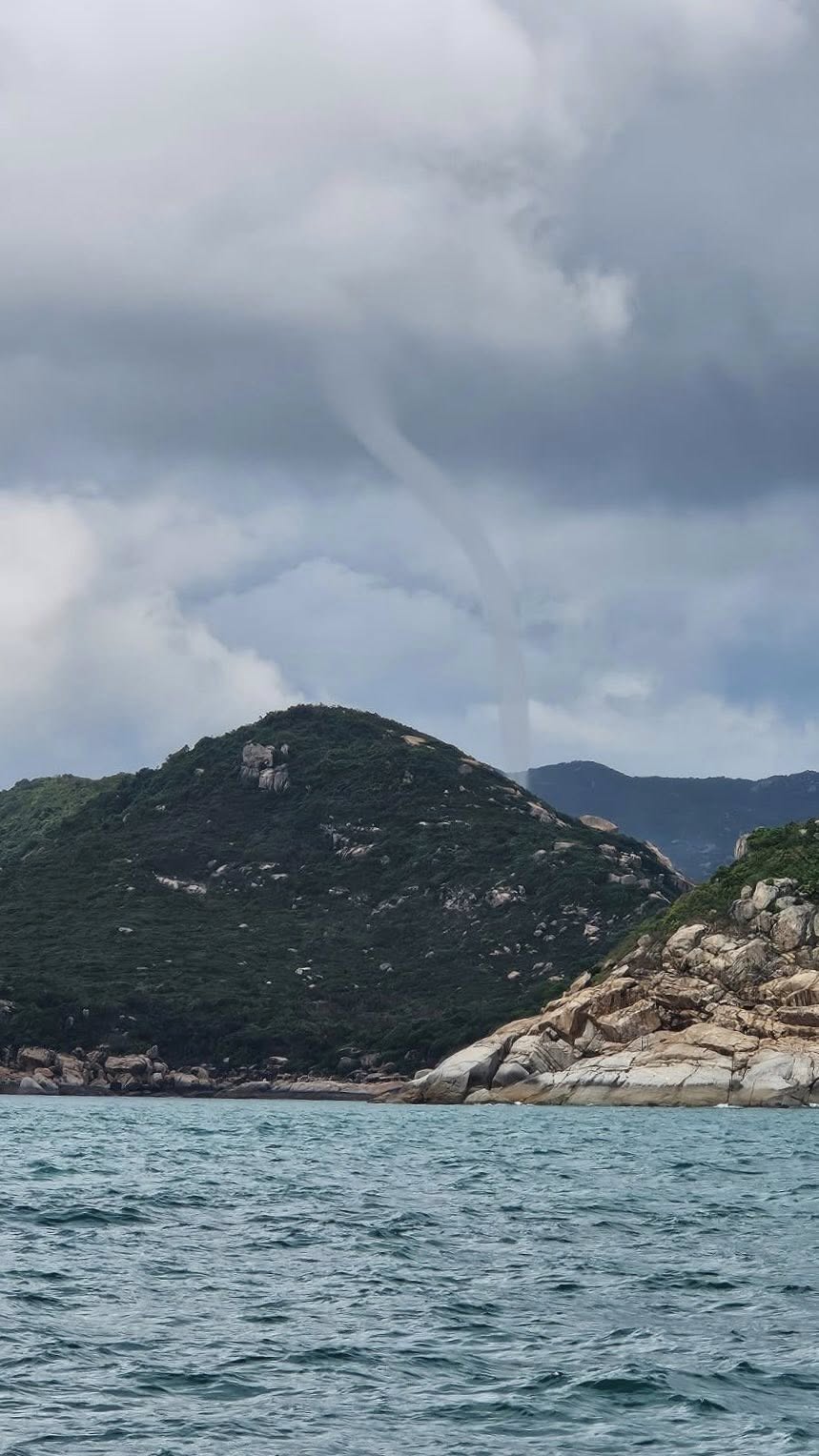 大公文匯全媒體報道,今日(12日)下午近1時,有市民在南丫島的東南面拍到「水龍捲」,好似雲間有巨龍汲水上天,形成蜿蜒水柱,天水相接,非常壯觀。