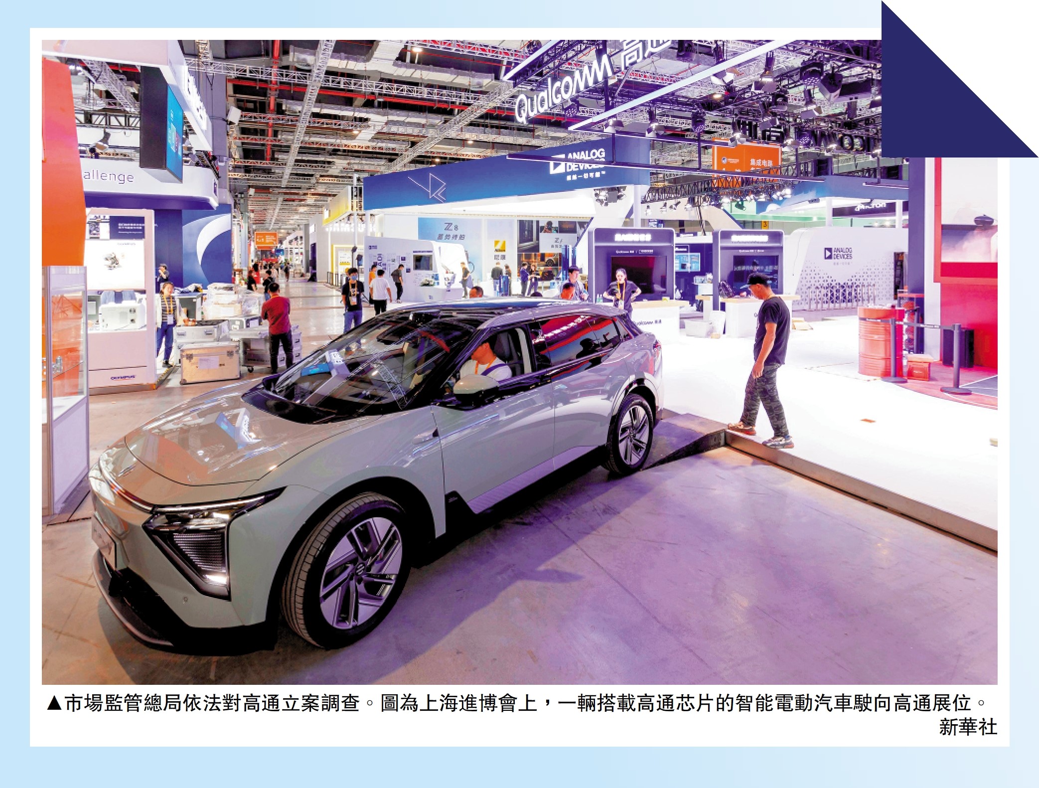(大公報 記者 趙一存)因高通公司涉嫌違反《中華人民共和國反壟斷法》,國家市場監管總局依法對其開展立案調查。高通公司11日回應稱,正積極配合中國國家市場監管總局的有關調查。