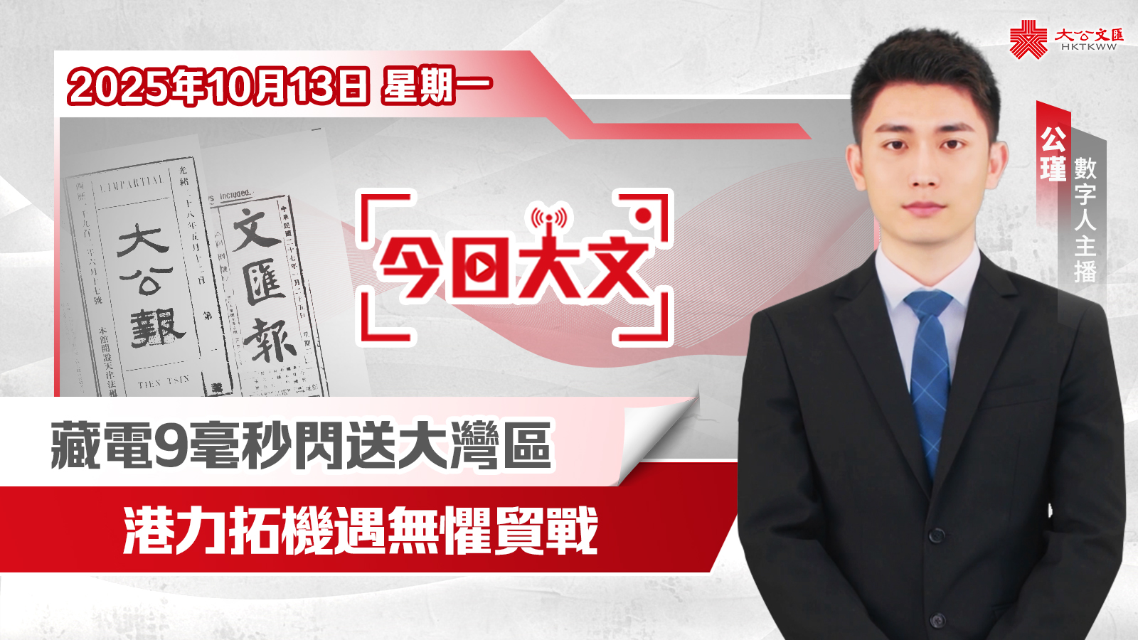 今天是2025年10月13日(星期一),大公文匯網與您速覽報紙看點。