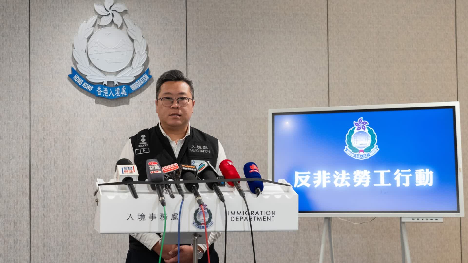 入境處於10月2至9日在全港多區打擊非法勞工,巡查133個目標地點。行動中共拘捕19人,包括13名懷疑非法勞工、3名涉嫌聘請非法勞工的僱主及3名協助及教唆者。當中有5️名非法外賣員和3️名外賣平台帳號持有人,其餘被捕的懷疑非法勞工分別從事餐飲、清潔、物流等行業。