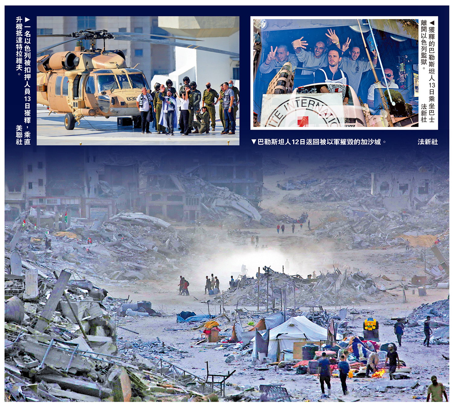 大公報綜合報道,當地時間13日,巴勒斯坦伊斯蘭抵抗運動(哈馬斯)釋放全部20名在世的以色列被扣押人員,以色列亦釋放近2000名巴勒斯坦被扣押人員。美國總統特朗普急於邀功,宣稱加沙地帶的「戰爭已經結束」。他13日先到以色列議會發表演講,隨後前往埃及主持有關加沙停火問題的峰會。然而,以色列全面撤軍、哈馬斯解除武裝、加沙戰後治理等關鍵問題仍懸而未決,加沙停火前景十分脆弱。俄外長拉夫羅夫直言:「希望未能實現的情況出現過太多次。」