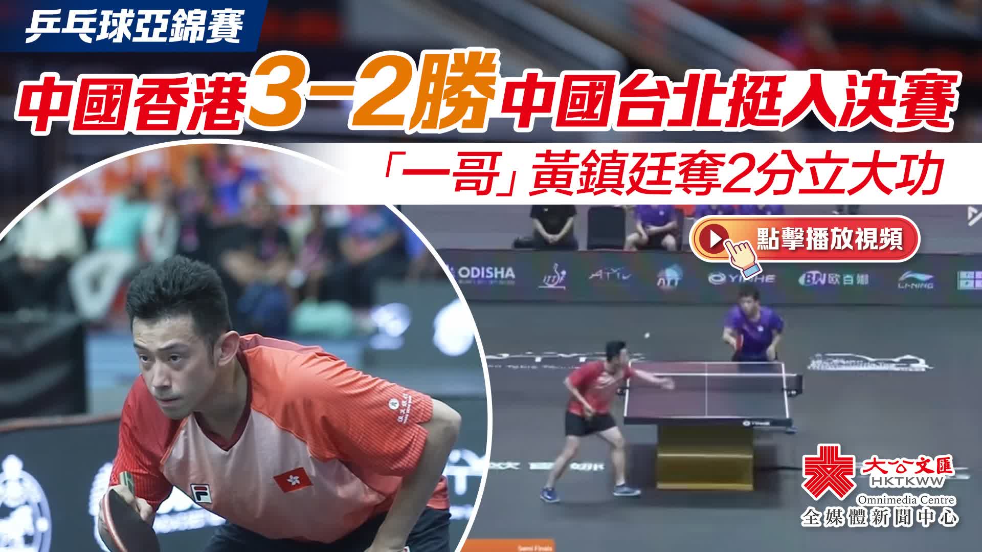 大公文匯全媒體報道,10月14日,2025年乒乓球亞錦賽男團半決賽,「一哥」黃鎮廷奪兩分,中國香港隊總比分3-2戰勝中國台北隊闖入決賽。