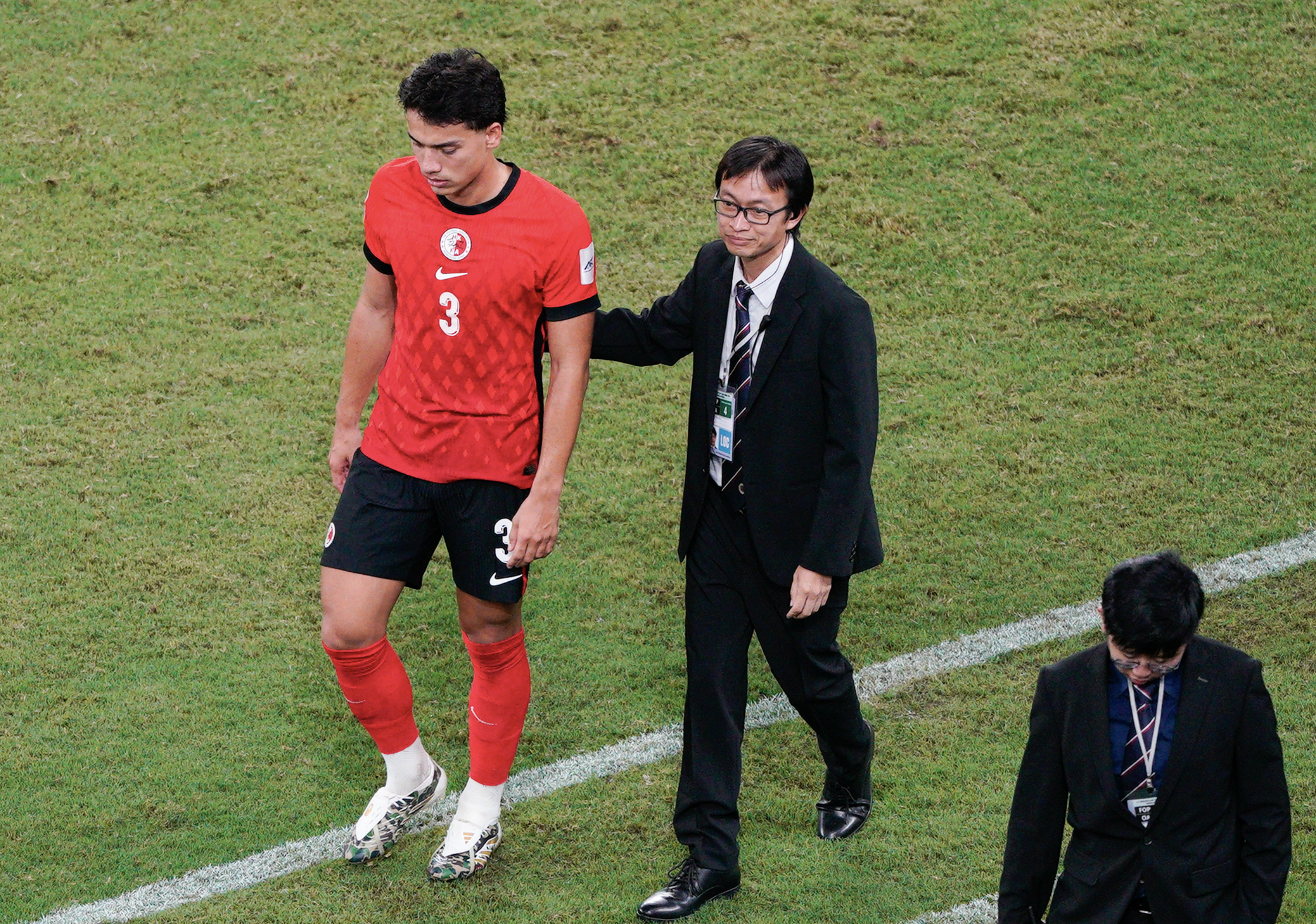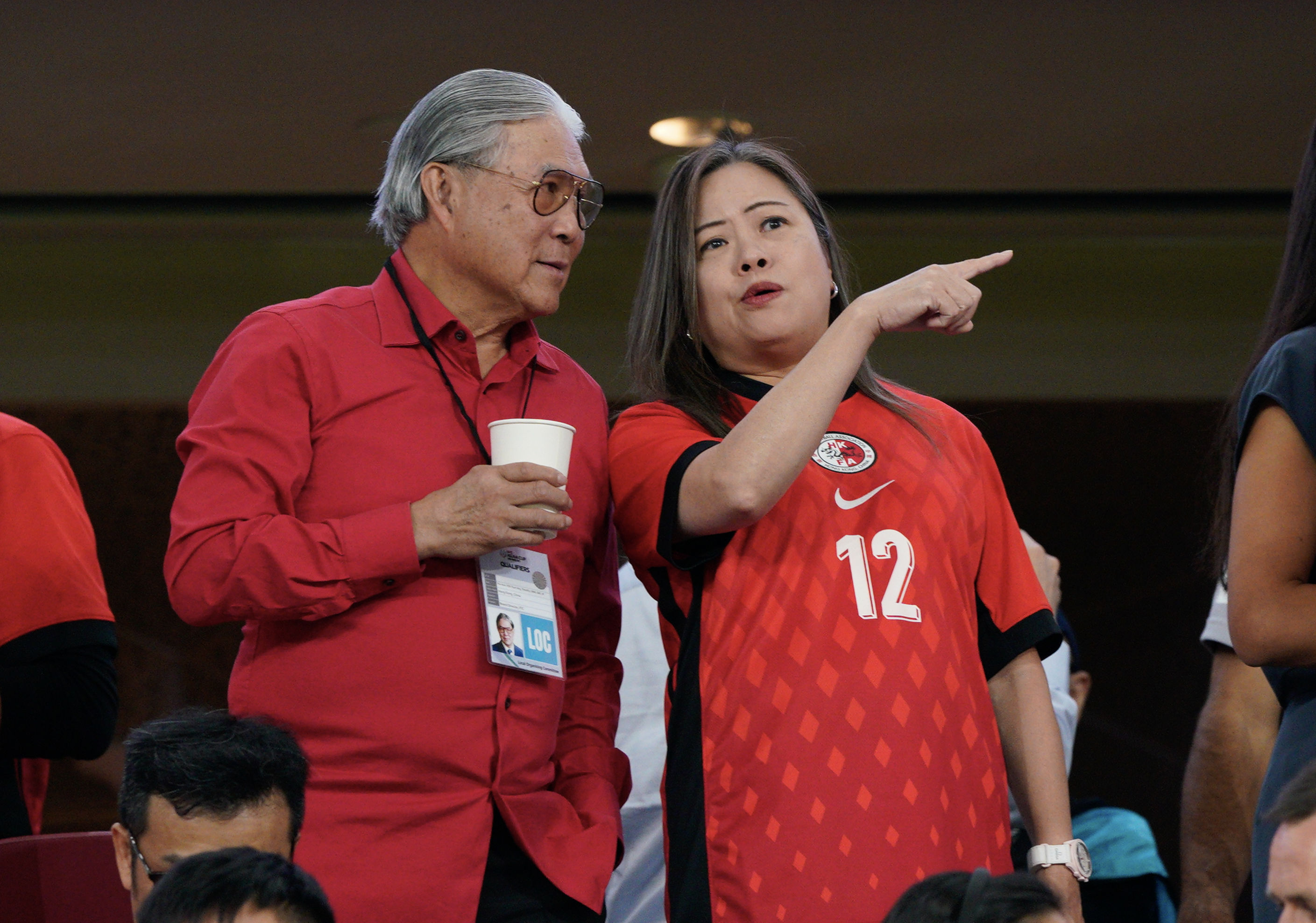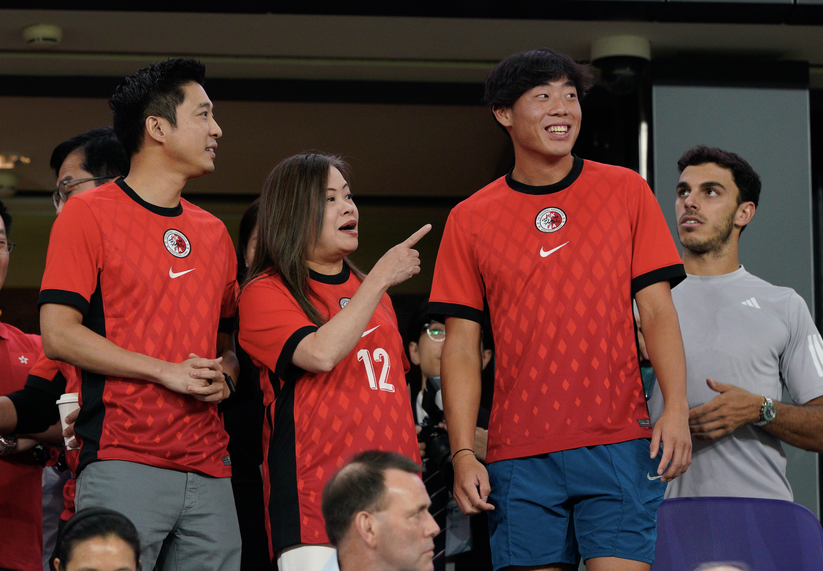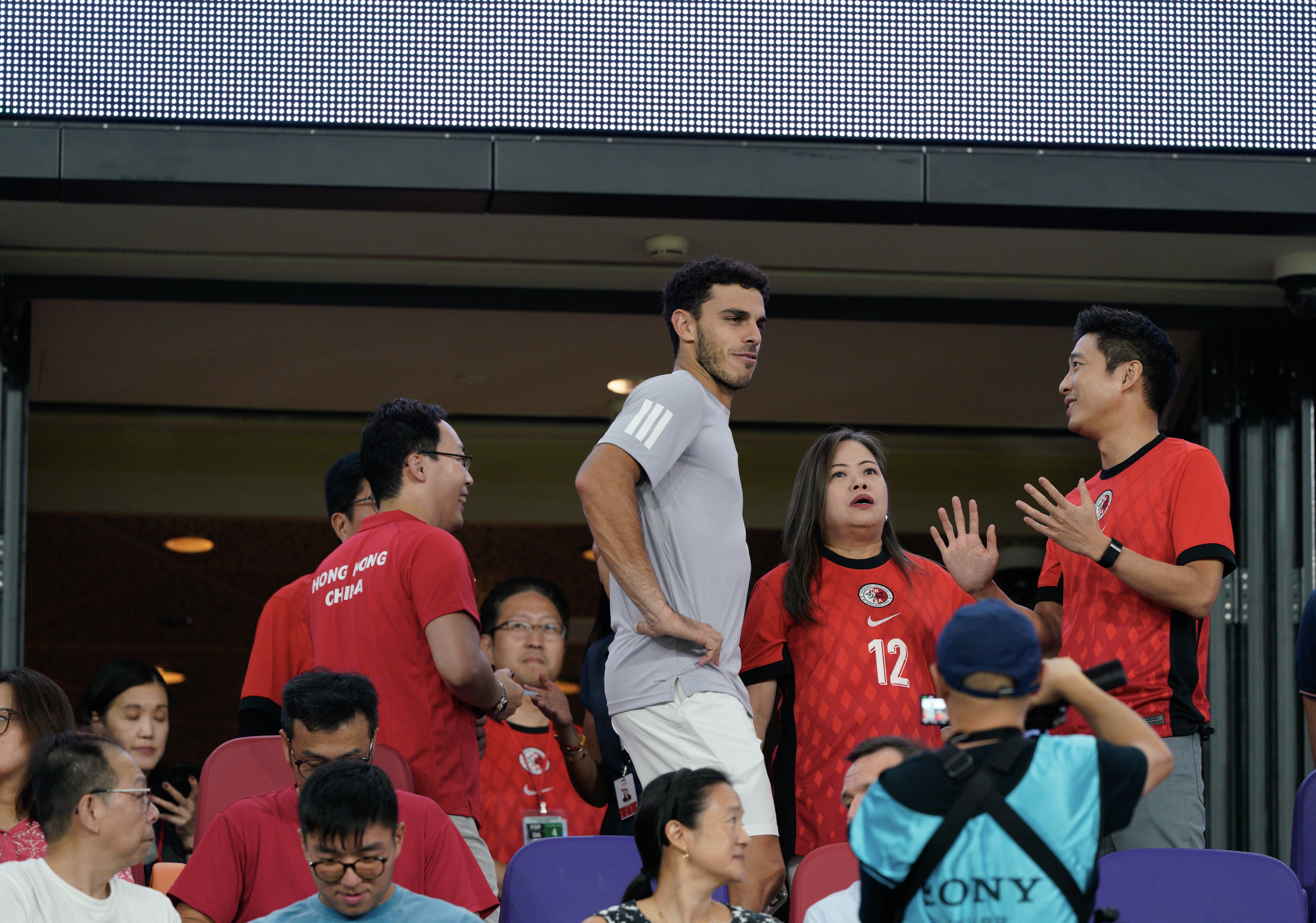 開賽前,香港網球運動員黃澤林亦身穿紅色球服到場支持,他今晚會在啟德體藝館進行網球比賽。