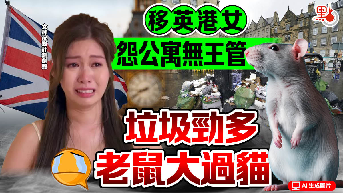 大公文匯全媒體報道,話說英國老鼠數量激增,有移英港女大呻自己入住一個猶如無王管嘅公寓,收集垃圾的地方有大到似龍貓的老鼠周圍爬,然而地方市議會和大廈管理公司卻互相推卸責任,直斥「錢就照收,但管堆屎比你,非常符合英國國情」。