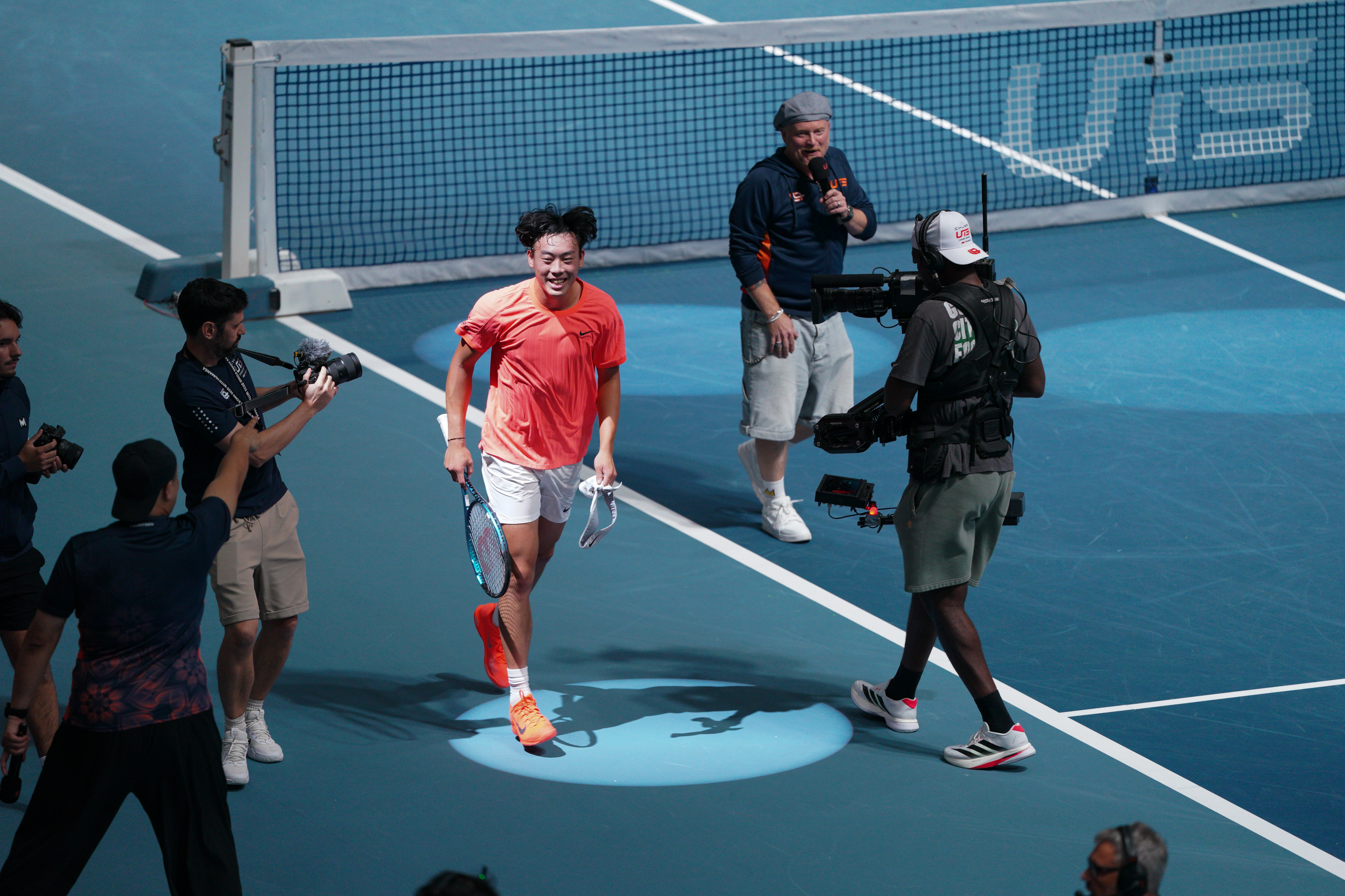 大公文匯全媒體報道,創新賽事「Ultimate Tennis Showdown」(UTS)昨日(14日)完成首日賽事,今天(15日)繼續在啟德體藝館進行第二日賽事。21歲的香港網球手黃澤林作為UTS香港站的焦點,在昨日惜敗俄羅斯名將盧比利夫(Jenson Brooksby)後,今晚又戰法國名將加斯基特(Richard Gasquet),以3-2大比分獲勝。