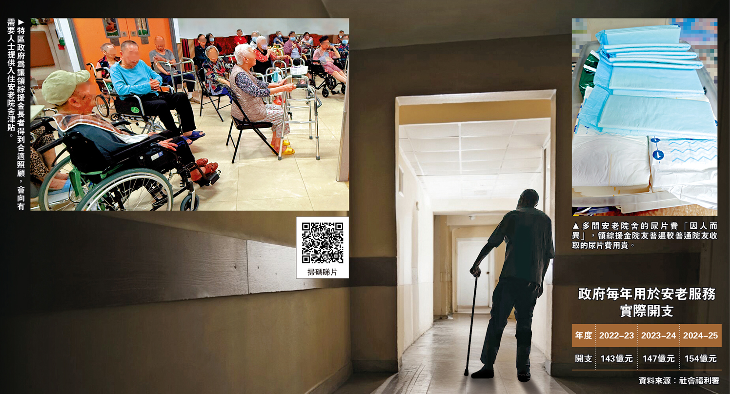 「你在我這裏(買尿片)是貴一點,20元一片都好,政府是允許我的!我報上政府,比如一個月3000元或4000元都好,政府都給回你。」日前,大公報記者來到港島一間護老中心,接待的葉姑娘十分熱情,她表示普通床位每月租金1萬元,獨立房間月租1.3萬元,電費、陪診費和雜費另計,如領取綜援金的院友,可向社署申請一些「實報實銷」的醫療消耗品費用,如紙尿片。
