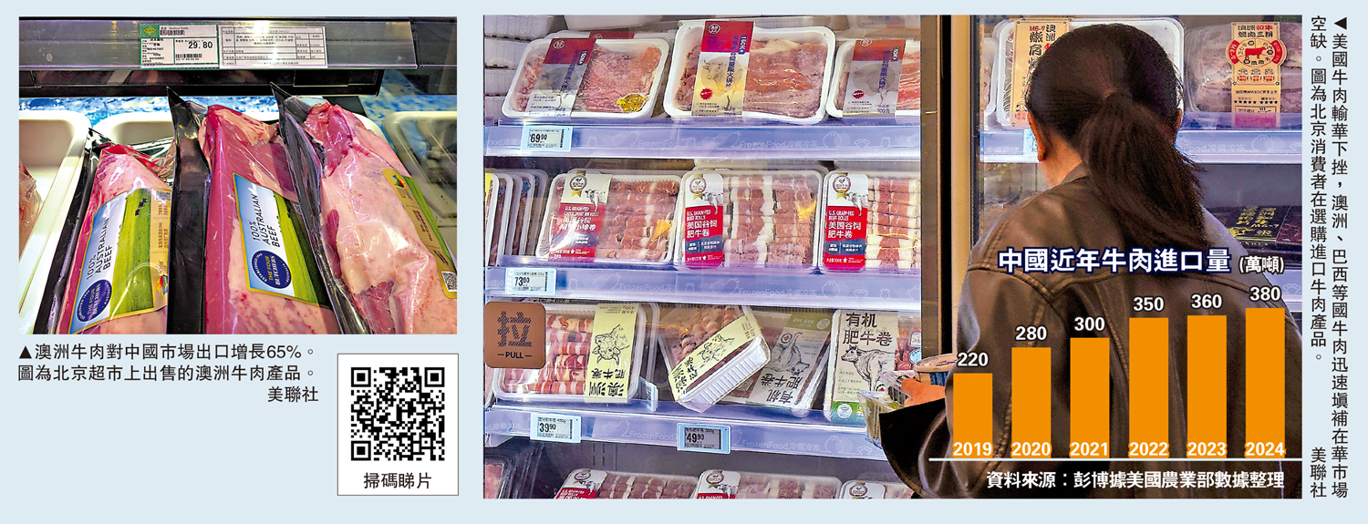 (大公報 記者 朱燁)今年初以來,特朗普高高築起的關稅壁壘,成為堵住美國牛肉輸華的關鍵障礙,今年前7個月美國對華牛肉出口量與出口額均較往年下挫近半。在此背景下,澳洲、巴西等國牛肉迅速填補市場空缺,在華份額持續擴大。