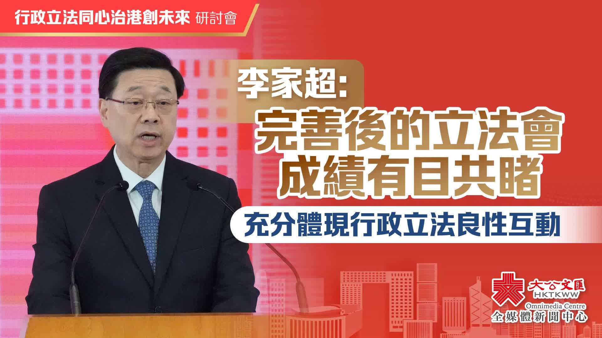 李家超表示,完善選舉制度後產生的第七屆立法會即將完成4年任期,全面落實了「愛國者治港」的原則,充分體現行政立法良性互動,特區實現良政善治、議會實現高效高質量議政。