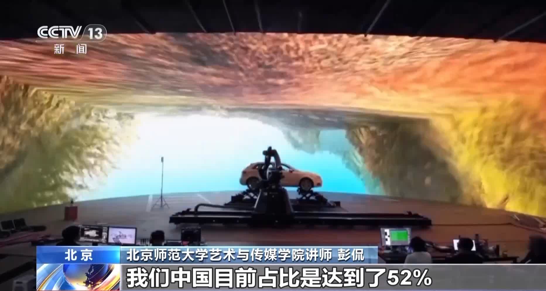 北京師範大學藝術與傳媒學院講師 彭侃:我們今年看到的在海外票房表現最好的這些國產影片,應該說他們都是代表了各自類型到目前為止,國產電影的最高的工業化水平。在全球虛擬製作的專利排行榜當中,我們中國目前佔比達到了52%,位列全球第一,這代表着我們中國電影的工業化水平是在快速進步的。
