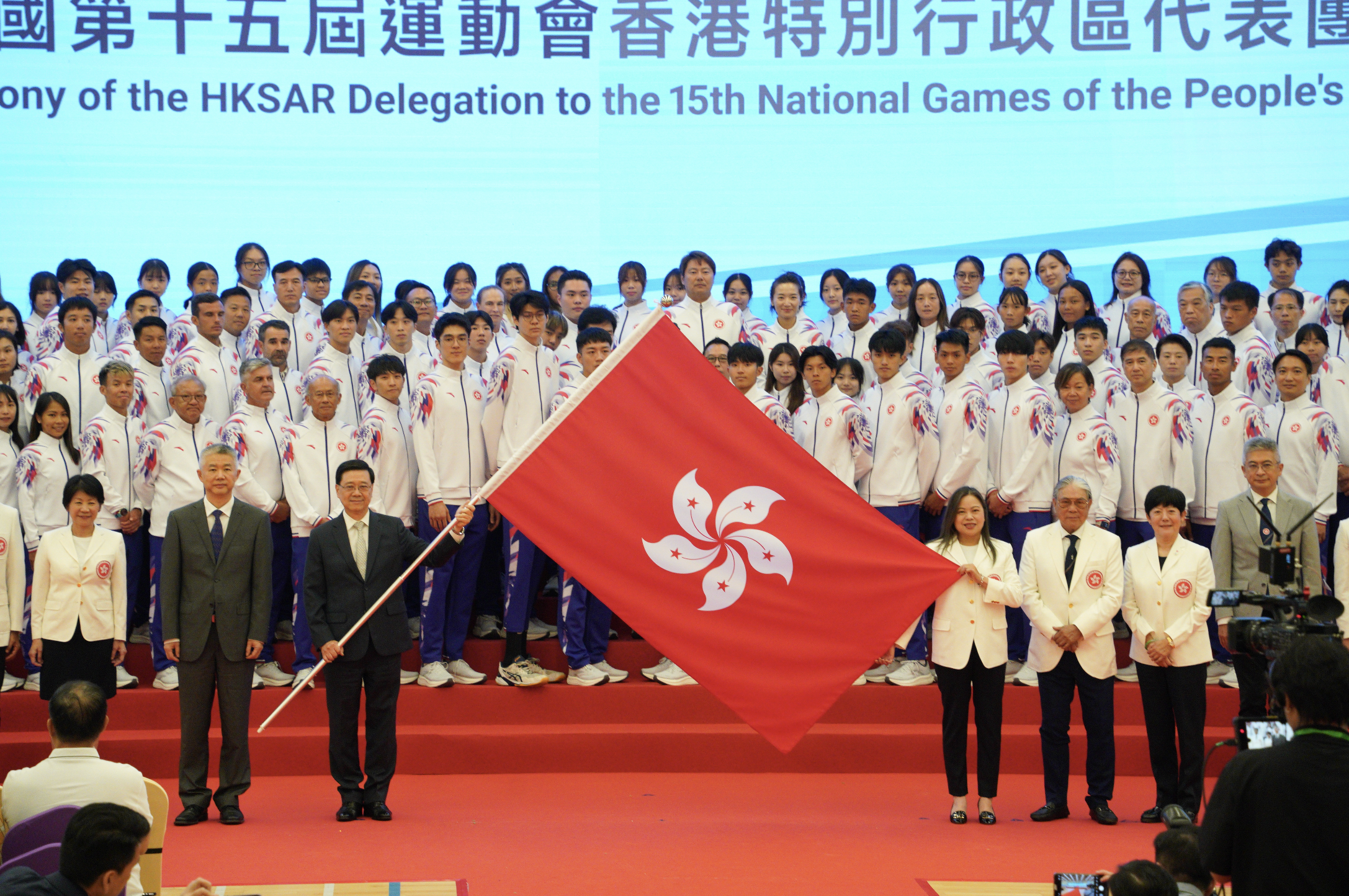 第十五屆全運會香港特區代表團15日於九龍公園體育館舉行授旗儀式,文化體育及旅遊局局長羅淑佩在致辭時透露,馬會已把「優秀運動員獎勵計劃」獎金預算上調50%。
