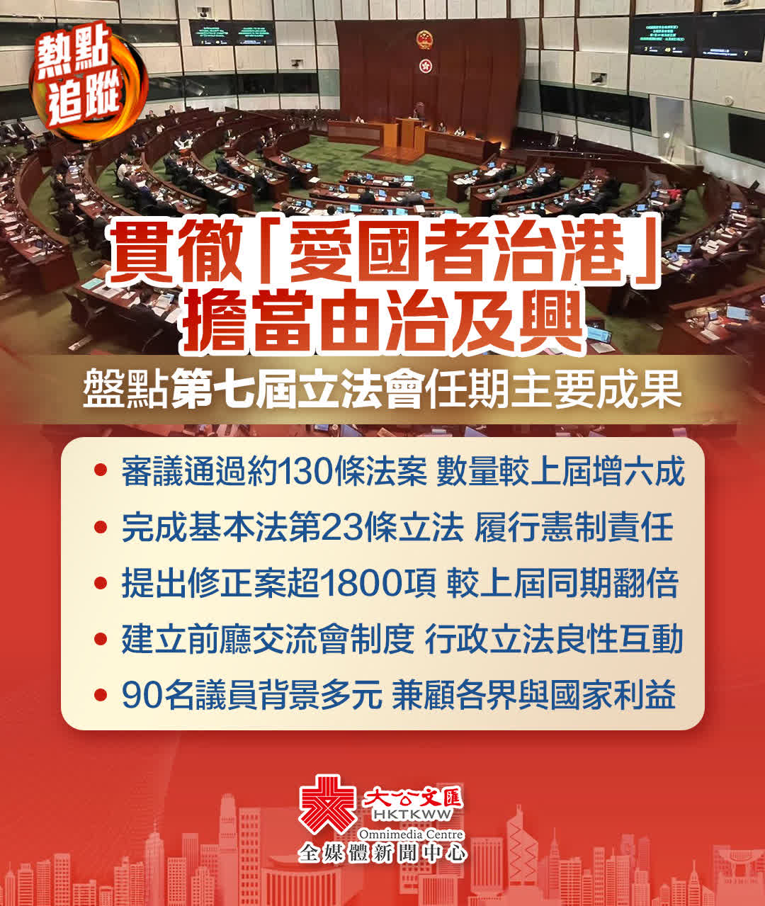 大公文匯全媒體報道,第七屆立法會的任期由2022年1月1日開始,直至2025年10月24日終止。本屆立法會全面落實「愛國者治港」原則,展現出務實高效的新氣象。任期內,立法會堅定履行憲制責任,成功完成基本法第23條本地立法;同時高效審議通過約130項法案,並批准近7000億港元撥款,以推動土地房屋、基建等關鍵項目,在維護國家安全、促進經濟民生發展方面取得了標誌性成果。