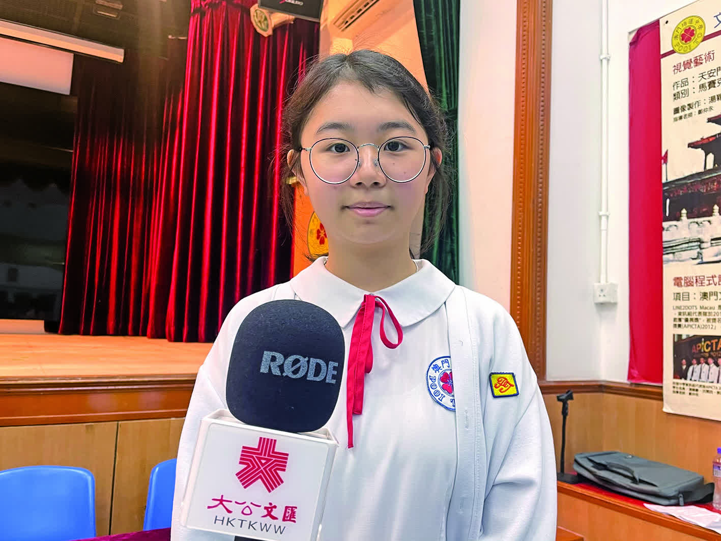 「抗戰與澳門」課件展示了抗戰時期大批難民湧入澳門的情況,衣衫襤褸的難民、破敗的街道,給澳門培道中學學生黃詩宇留下深刻印象。她直言,當年澳門社會的破敗與今天的繁華形成鮮明對比,生動展現了國家發展帶來的滄桑巨變,並認為澳門學子應肩負起傳承抗戰精神的責任,努力學習、充實自我,將來要為國家發展貢獻己力。
