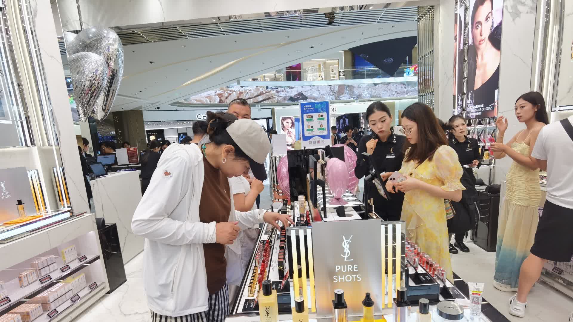 記者今天在三亞國際免稅城看到,遊客絡繹不絕,熱門商品前擠滿了選購的人群。據了解,自2020年7月起,海南離島旅客每年每人免稅購物額度由3萬元提升至10萬元,並取消單件商品免稅限額。據海關統計,新政實施5年來,海南離島免稅購物金額共計1958億元,年均增長62.6%,政策紅利充分釋放、產業蓬勃發展。