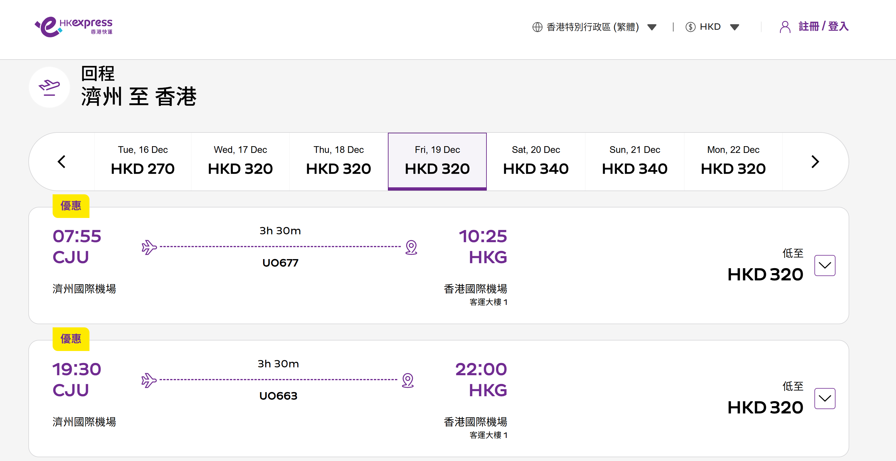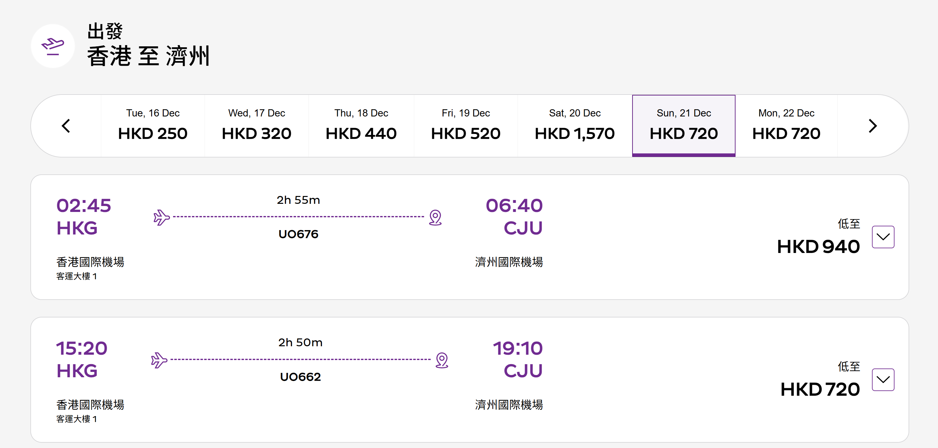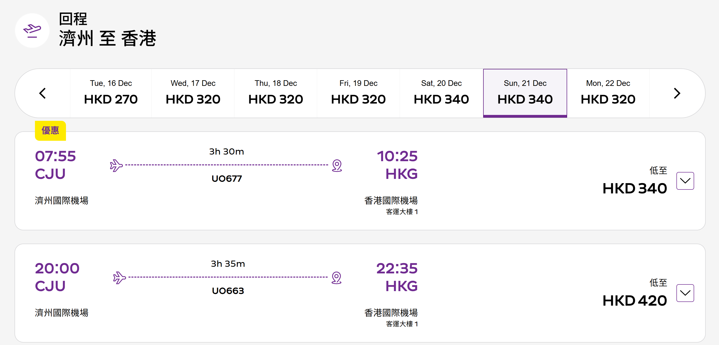 UO663 濟州島—香港