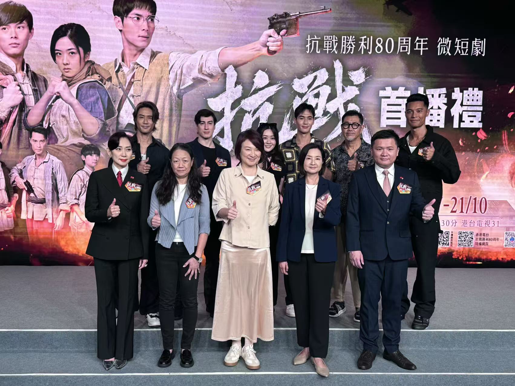 (大公文匯全媒體 記者 梁譯尹)今年是中國人民抗日戰爭暨世界反法西斯戰爭勝利80周年,港台與政府新聞處聯合製作微短劇《抗戰》,弘揚愛國精神,提醒大家珍視和平。《抗戰》首播禮今日(17日)舉行,以抗戰時期的香港為背景,透過緊湊而感人的劇情,緬懷艱苦的抗戰歲月,讓觀眾可以了解祖國和香港的抗戰歷史,提升愛國精神和凝聚家國情懷。首播禮上,劇中的演員們亦來到現場,包括楊天宇、林沚羿、黎振燁、李善恒、何華超及莫浩峰,眾人一齊率先觀看《抗戰》的精彩內容,第一時間分享觀後感。