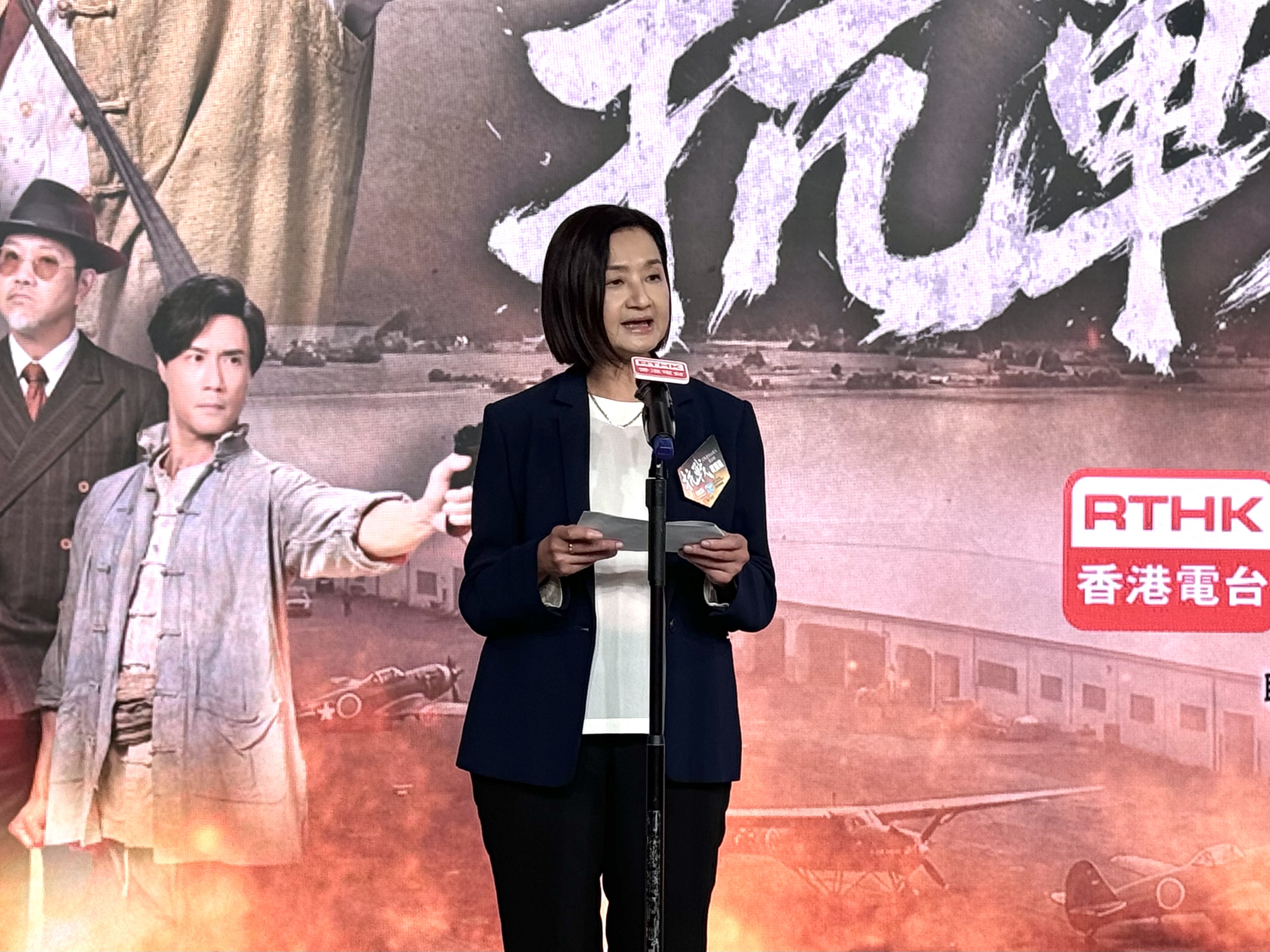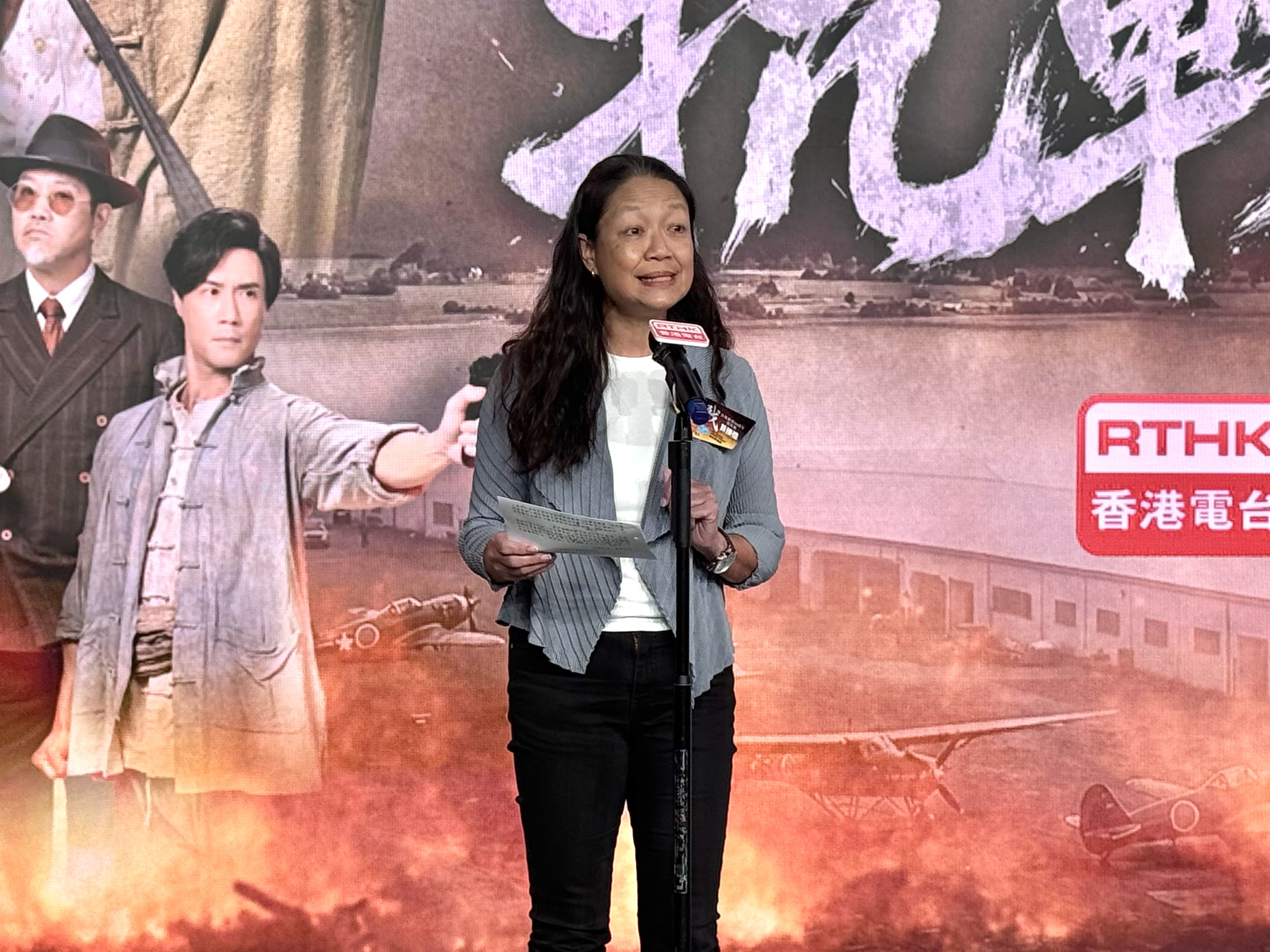 廣播處長關婉儀表示,《抗戰》以香港淪陷為背景,透過主角「魚片」和「魚毛」的經歷,呈現當時抗日人士在戰火之中的堅毅信念和無私奉獻的犧牲精神。這部作品不只是回顧歷史,亦可以傳遞保家衛國的民族情懷和價值觀。兩個部門今次合作,選擇以微短劇的形式,因其是時下流行、便於在線上觀看的影視模式。值得一提的是,在製作抗戰時期的劇集時,團隊應用了人工智能技術,還原了香港戰時的歷史場景,大大提升了內容的可觀性,她舉例指劇中一個很重要的場景,偷襲啟德機場,便採用人工智能技術製作。
