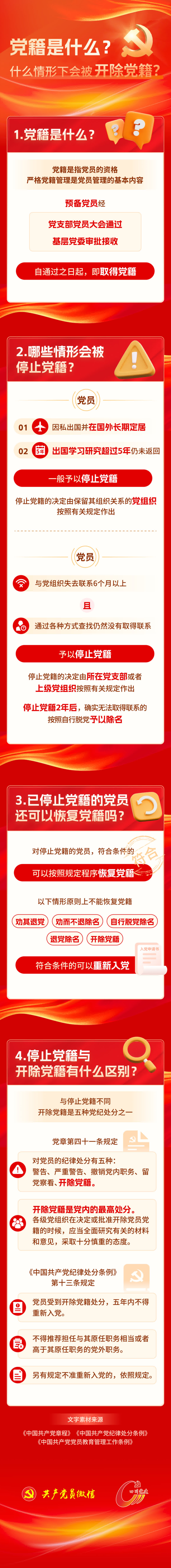 與停止黨籍不同,開除黨籍是五種黨紀處分之一,而且是黨組織對黨員最嚴厲的處罰,針對的是嚴重違犯黨紀的黨員。