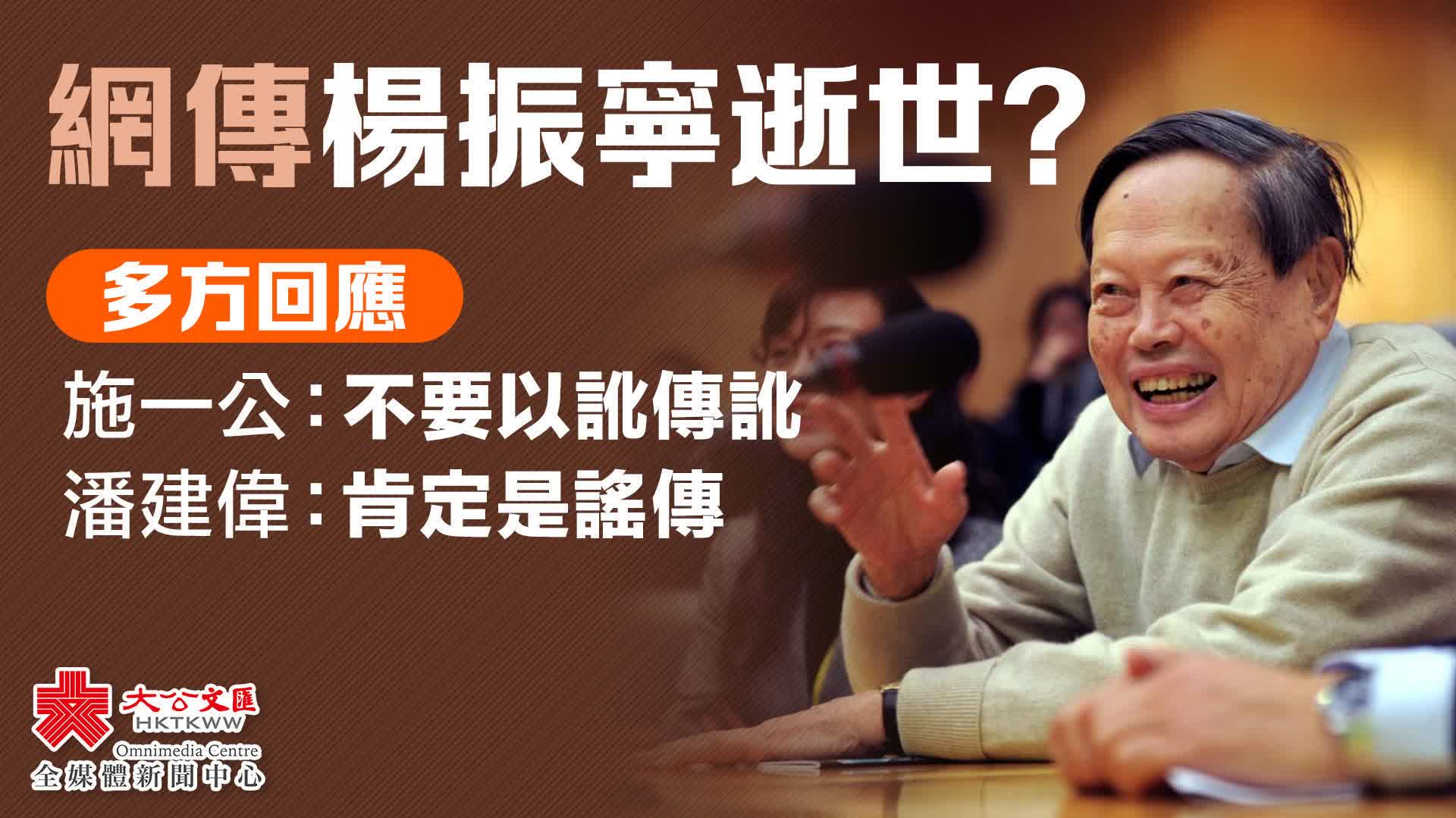 大公文匯全媒體報道,近期,有網絡消息稱,中國科學院院士、著名理論物理學家、諾貝爾獎獲得者楊振寧逝世,引發網友們關注。針對網傳內容,內地媒體紅星新聞今日(17日)17時45分許致電楊振寧擔任董事會名譽主席的西湖大學,接線工作人員回覆稱:「我們並未收到關於此消息的官方通知。」