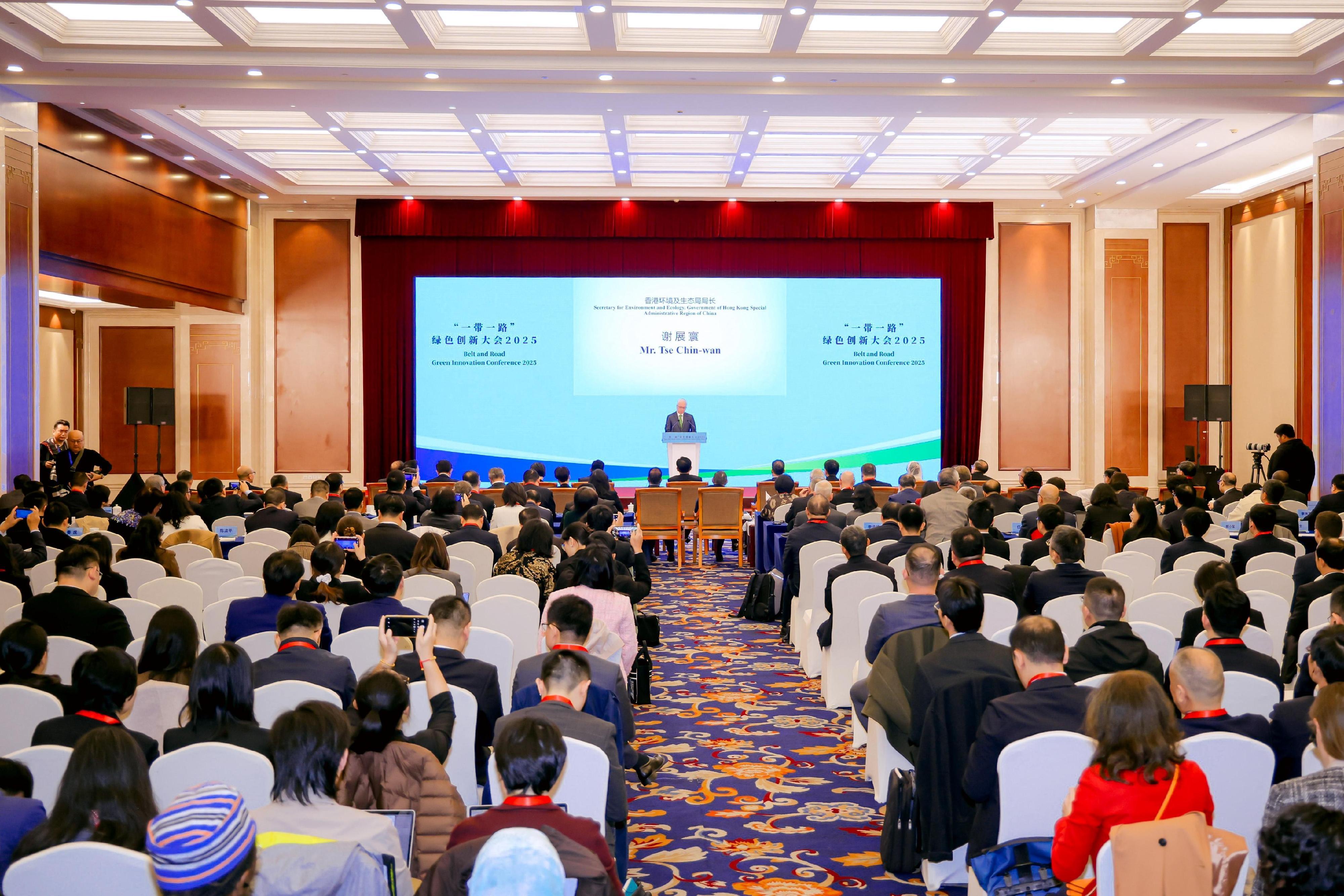 環境及生態局局長謝展寰今日(十月十八日)在北京出席「一帶一路」綠色創新大會2025,與共建「一帶一路」夥伴地區分享香港在綠色創新方面的經驗,以及推進環境保護合作的方向。