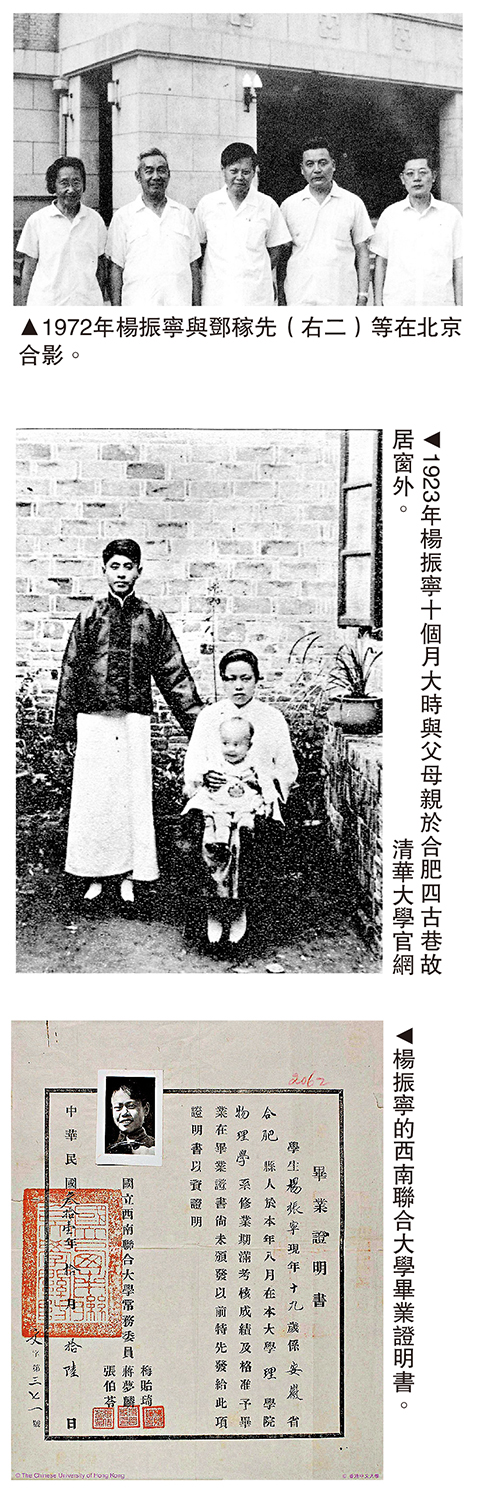 得悉楊振寧教授昨日(18日)在北京逝世,雖然不太感到意外,到底已103歲高齡,近年亦已長居醫院,但仍不免一陣悵然。從此世上少了一位能人智者,物理學界少了一位泰山北斗式的人物,而對筆者個人來說,失去的是一位40多年來愛護扶持有加的長者和一份親切持久的情誼。如同不少人對長輩一旦溘逝的心情一樣,筆者此刻最強烈的感受就是為什麼不在楊教授晚年仍健在的時候多去北京探望,陪他聊天?