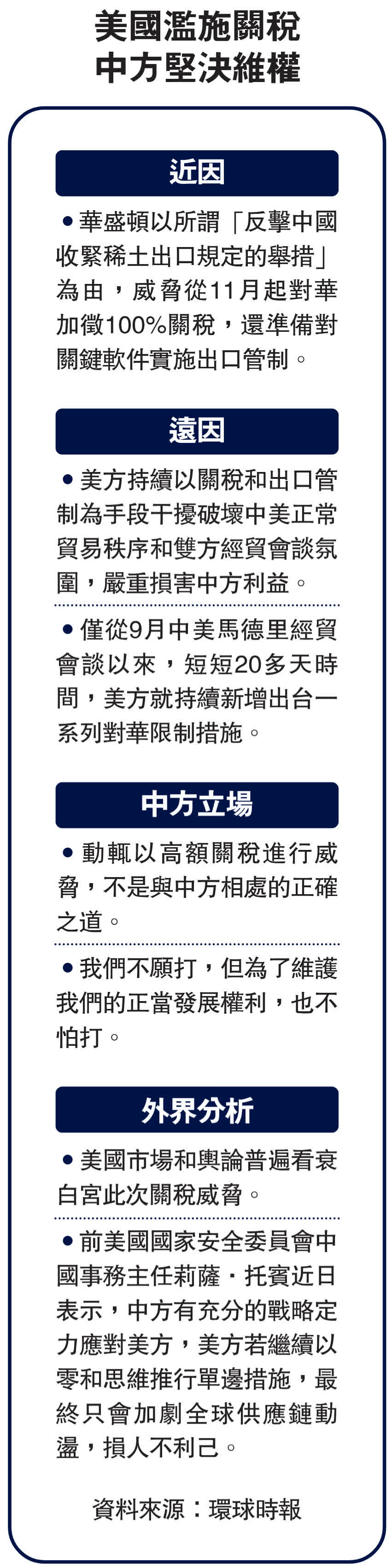 沈逸指出,國慶長假以後,中方出台了一系列的反制措施,直接誘因是中美馬德里會談以來,美方持續發難實施單邊霸凌,這嚴重破壞了中美之間已經達成的信任與合作。對此,中方第一時間給予堅決、精準反擊。