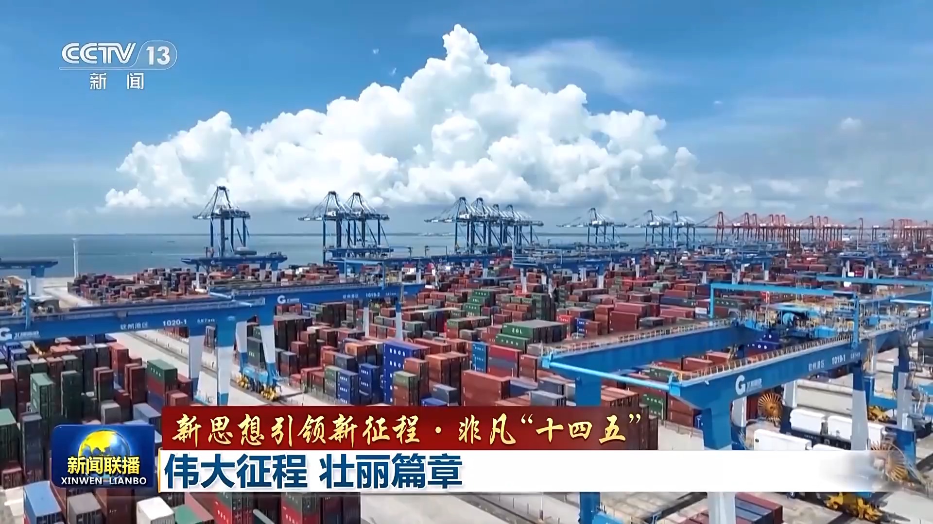 這是欣欣向榮的奮進中國。五年經濟增量預計超過35萬億元,高於世界排名第三國家的經濟總量。對世界經濟增長的貢獻率保持在30%左右;貨物貿易規模較「十三五」末增長了32.4%,連續8年穩居全球第一。