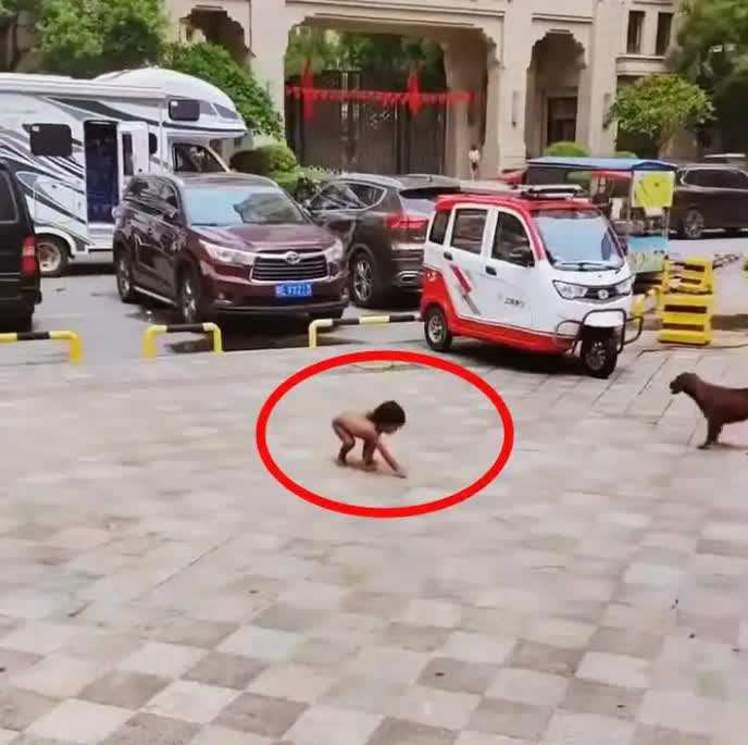 另一份視頻中,這個孩子用四肢在地上爬行奔跑。