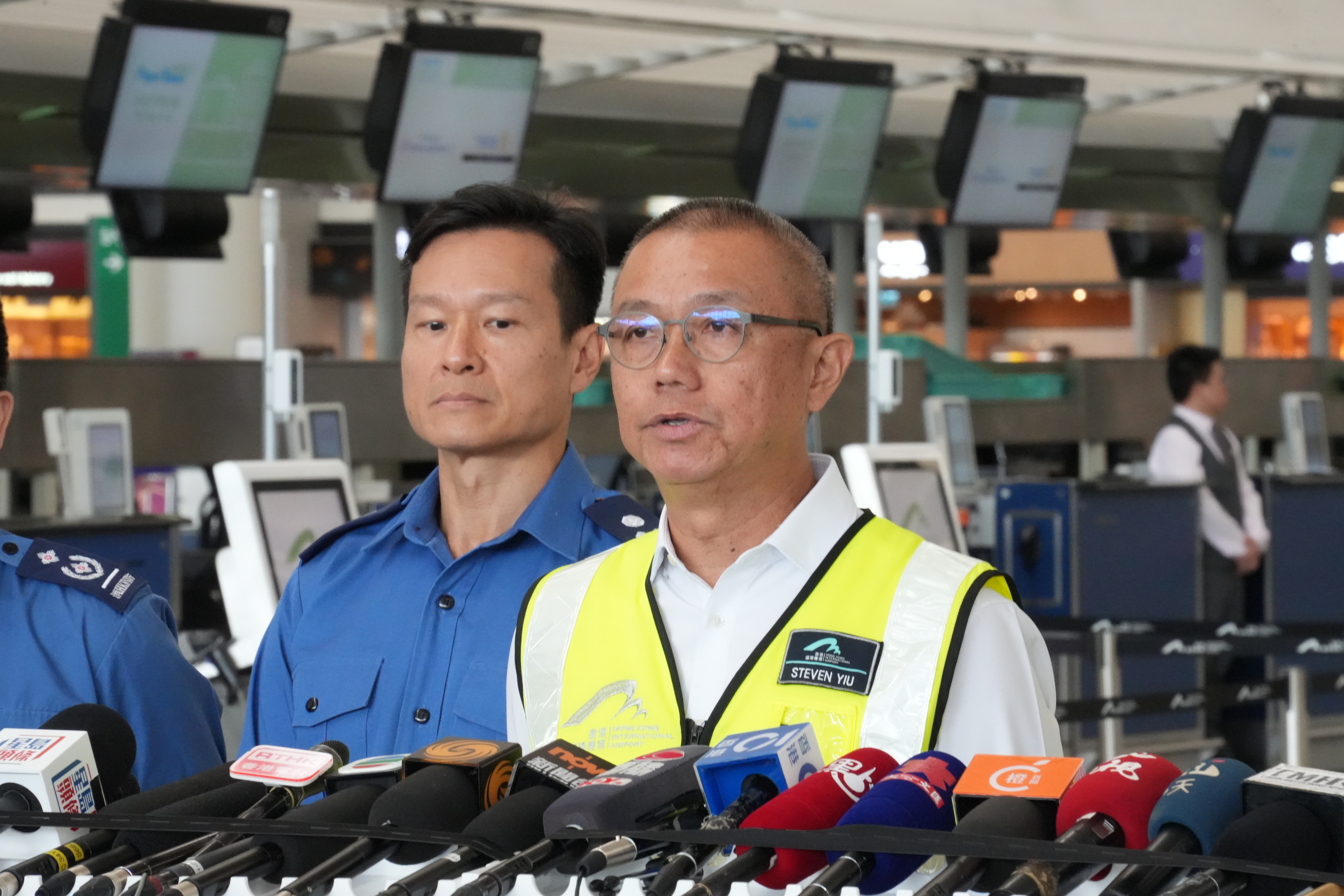 香港機場管理局機場運行執行總監姚兆聰表示,涉事巡邏車並非衝出跑道,而是由涉事飛機衝出跑道,撞到圍網後的巡邏車,並將其撞落海。他指出,涉事巡邏車負責巡邏機場北海岸線超過4公里,目的是確保整個機場的安全,從1998年至今一直有巡邏車安排。當巡邏車不巡邏的時候會停定,事發時涉事巡邏車停定在事發位置。