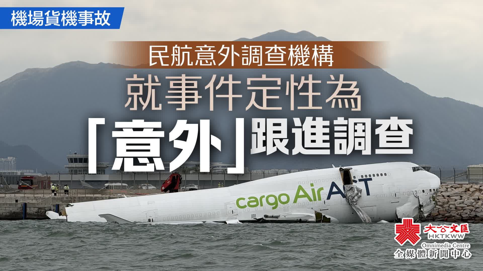 大公文匯全媒體報道,香港國際機場今日(20日)凌晨發生罕見事故,一架由杜拜抵港的貨機降落期間,懷疑衝出跑道墮入海中,一輛機場地勤車懷疑被撞落海,車上兩人死亡。民航意外調查機構宣布,就事件定性為「意外」並作出調查。