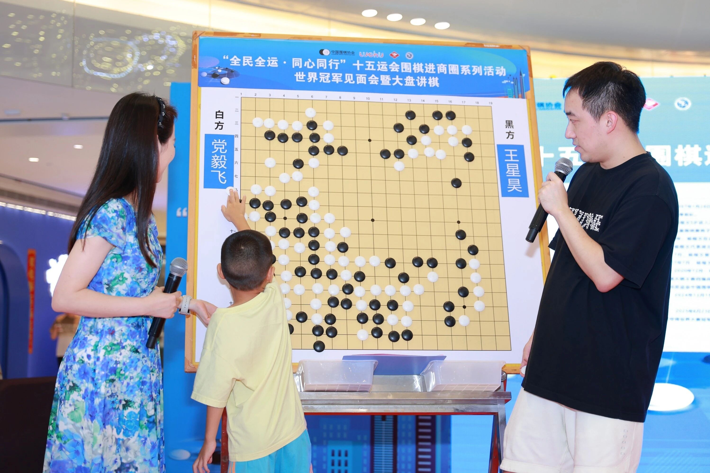 活動的核心環節——大盤講棋,將現場氣氛推向第一個高潮。講棋嘉賓陳盈與楊楷文聯袂登台,通過巨大的實體棋盤,為現場棋迷進行深入淺出的精彩講解。