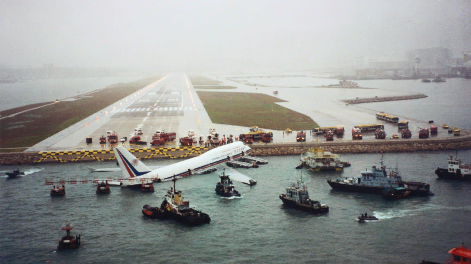 翻查資料,中華航空也曾發生過在香港衝出跑道墜海的事故,造成機上23人受傷。1993年11月4日,香港正受颱風「艾拉」吹襲,天文台正懸掛三號強風信號。華航605號班機搭載了274名乘客、22名機組員,從桃園飛往香港舊機場(啟德機場)。據一些未受傷的乘客表示,飛機着陸後未即時減速,反而繼續加速滑行,直至臨衝入海前數百米才開始急減速,結果衝出跑道並墜入跑道盡頭的海中。幸是次事故中,機上296人全部獲救,其中23人輕傷送醫院,均無大礙。當時的機型是波音747型客機。