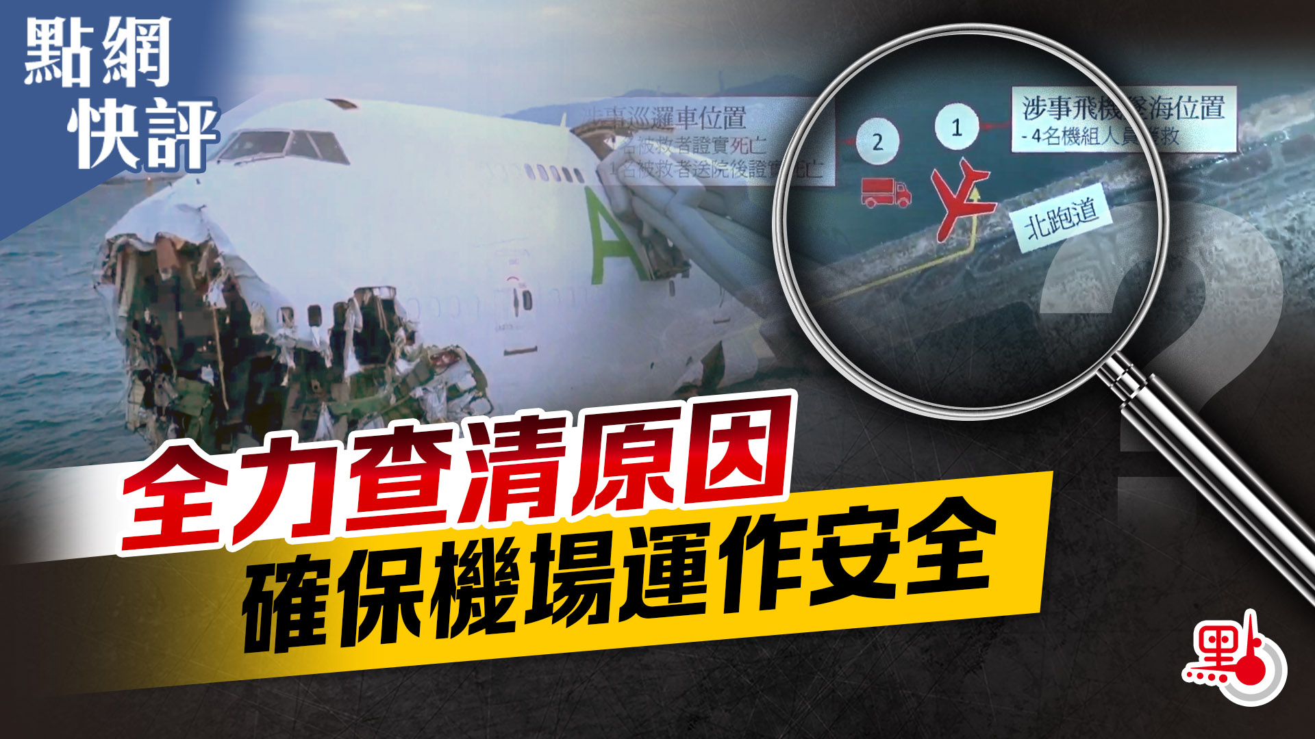 香港國際機場今日(20日)凌晨約3時50分發生罕見事故,一架由杜拜抵港的貨機降落期間,懷疑衝出跑道墮入海中,一輛機場地勤車懷疑被撞,車上兩人一度墮海失蹤,之後地勤車30歲的乘客被救起後當場證實不治,40多歲的司機送院後死亡。今次機場發生導致2人死亡的奪命事故,更加需要全力查清事故原因,確保機場運作安全。