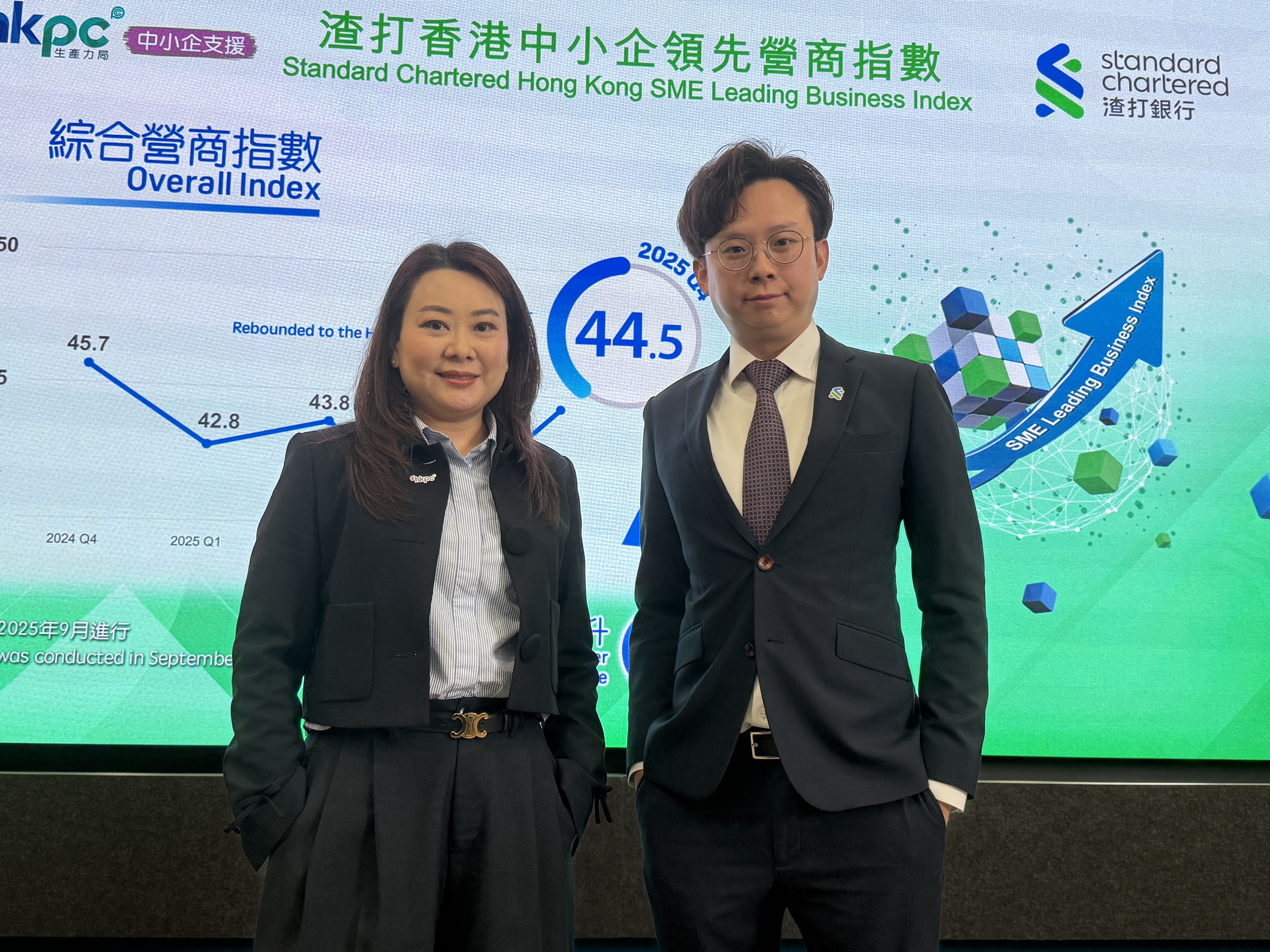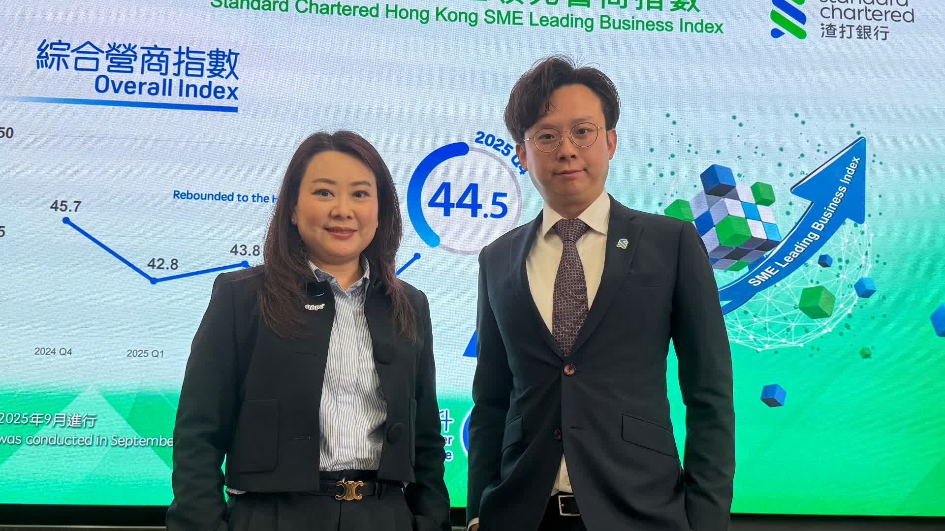 渣打大中華區經濟師陳冠霖表示,指數在第三季度跌至13個季度最低點後,於第四季度反彈至年內最高點44.5。「環球經濟」分項指數的大幅回升為主要因素,長期中小企營商信心趨向穩定,然而,根據中小企的回應,短期挑戰依然存在。
