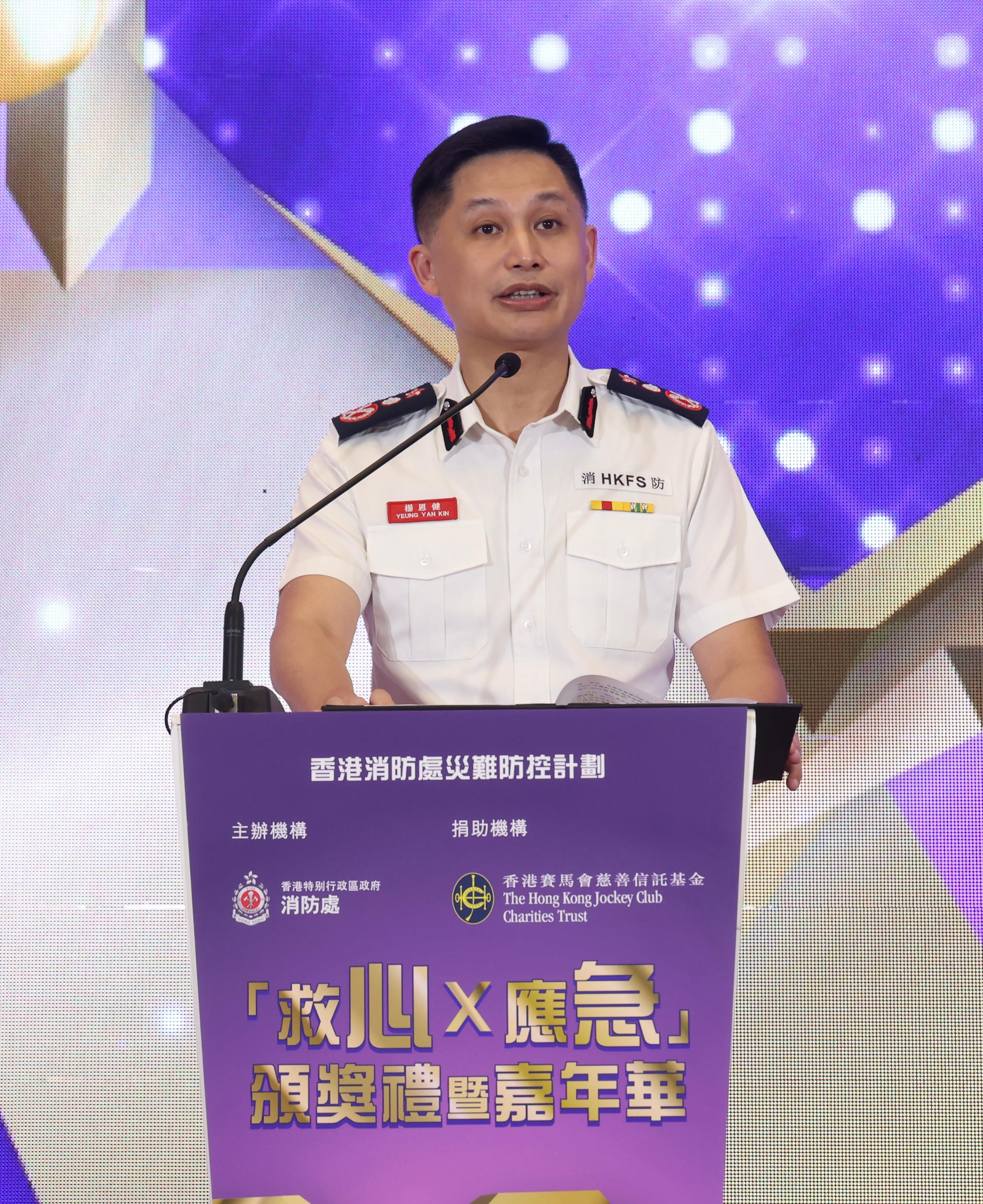 消防處處長楊恩健致辭時指出,香港每年約有8000宗院外心臟驟停個案,平均每日約有22宗,市民若能及時以心肺復甦法(CPR)和自動心臟除顫器(AED)為患者急救,很大機會可以拯救生命。楊恩健指,有賴各界積極響應消防處「AED 睇得到 用得到」計劃,可供公眾使用的AED已由二○二一年約1 000部增加至現時超過3700部,並由超過370間機構在全港安裝。消防處今年亦聚焦在公營房屋的公共空間增設AED,進一步提升覆蓋率。