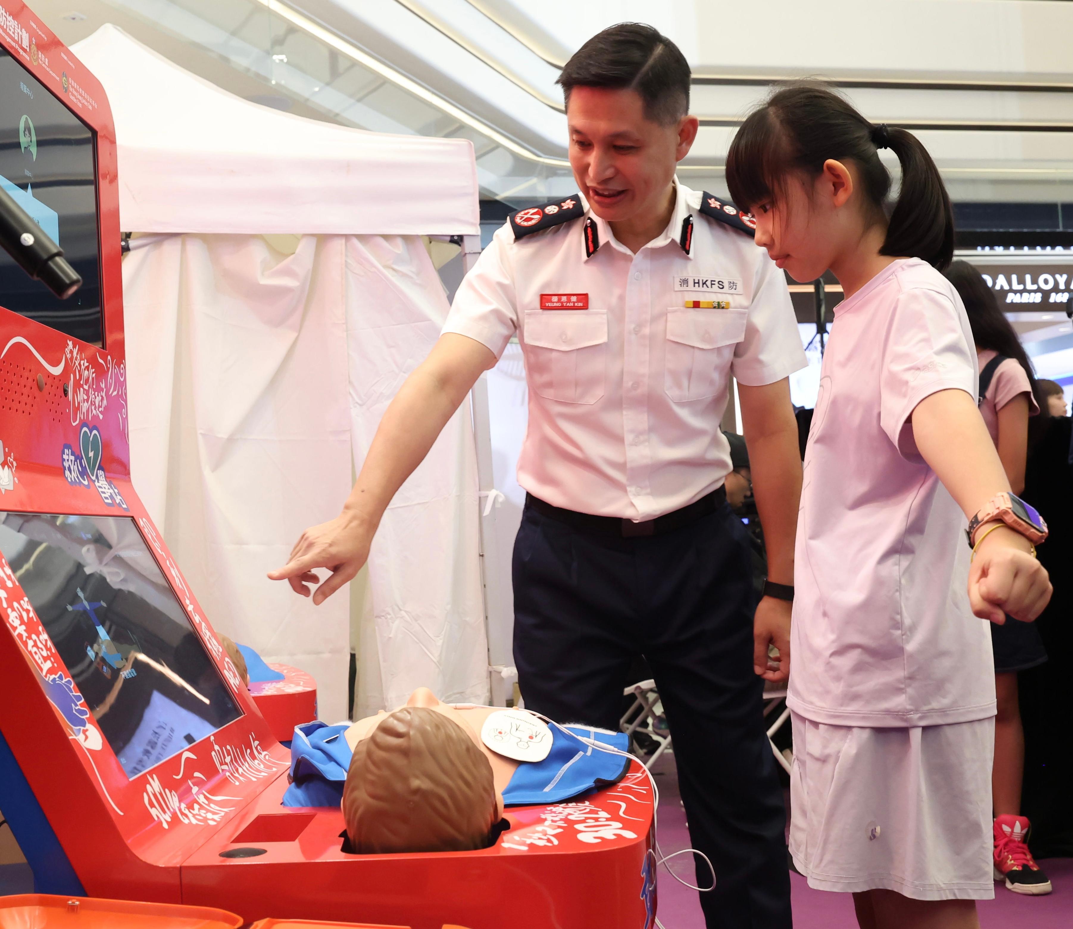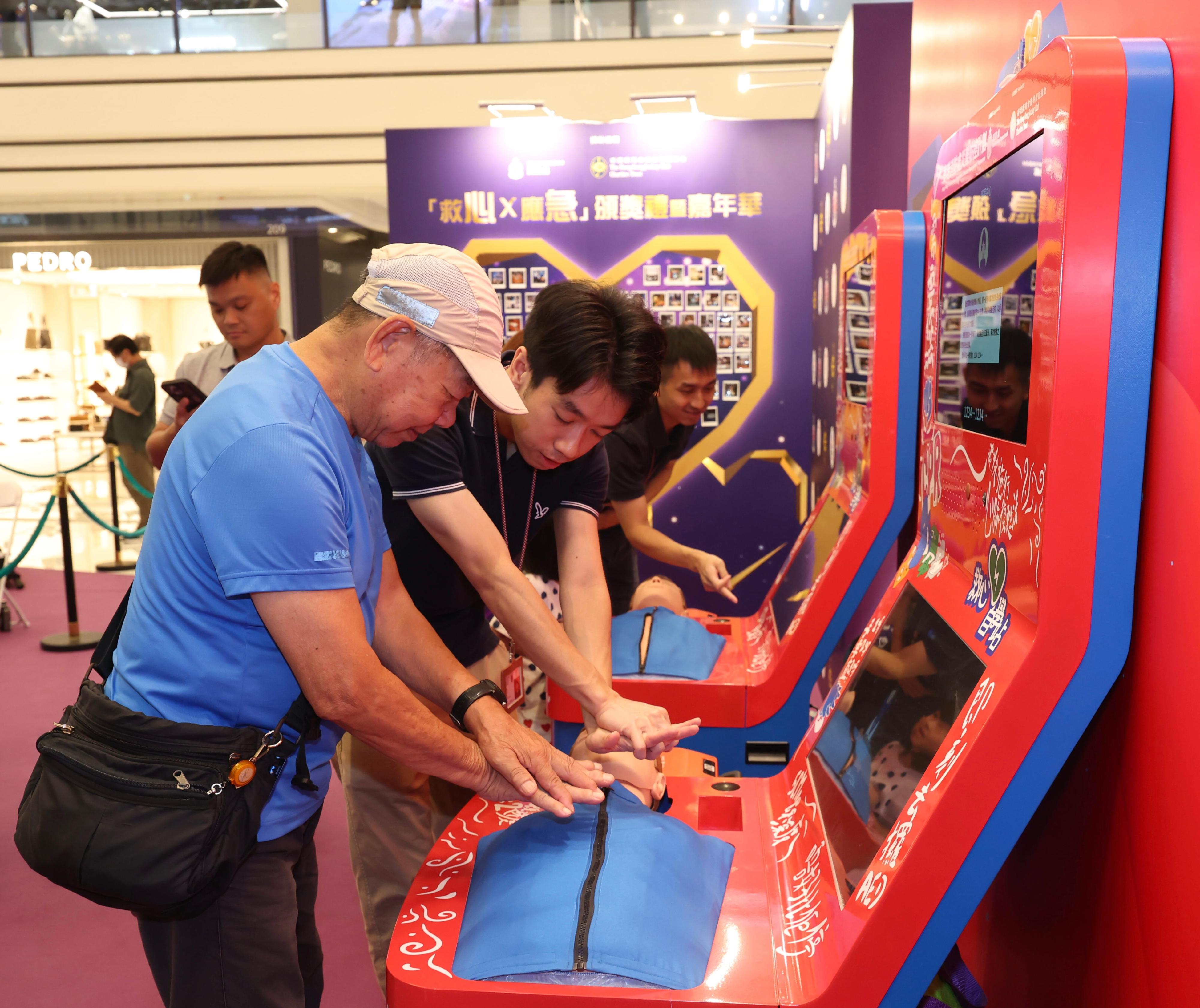 消防處今年會在社區設置10部「救心自學站」,讓市民透過高仿真CPR訓練模型和AED模擬器配合互動虛擬場景自我學習,並透過人工智能即時評估。活動現場設有體驗專區,吸引不同年齡層市民參與。
