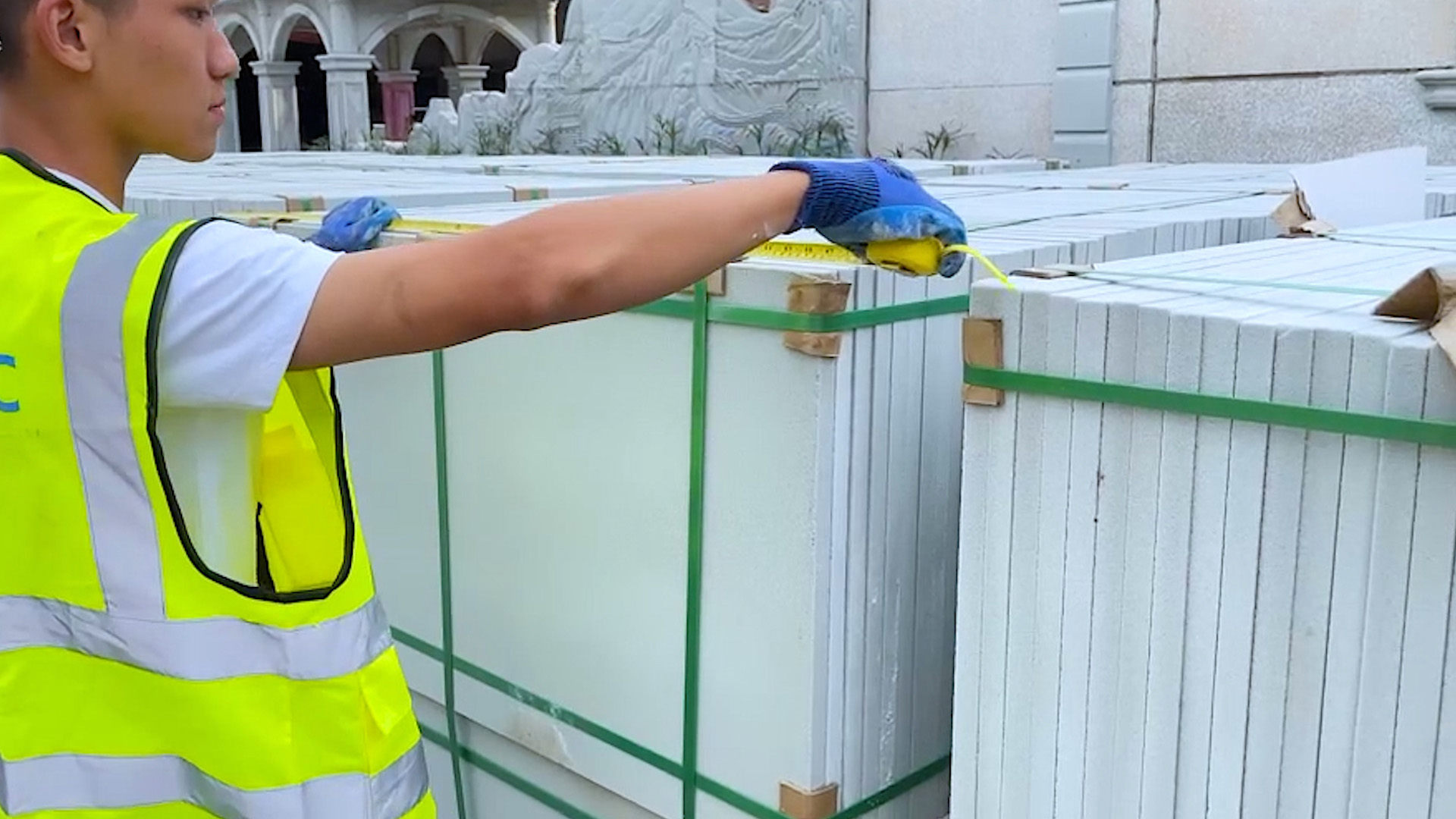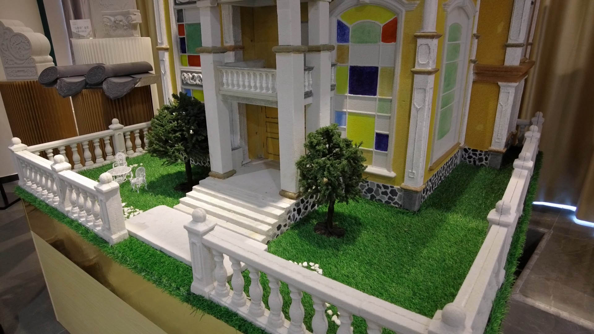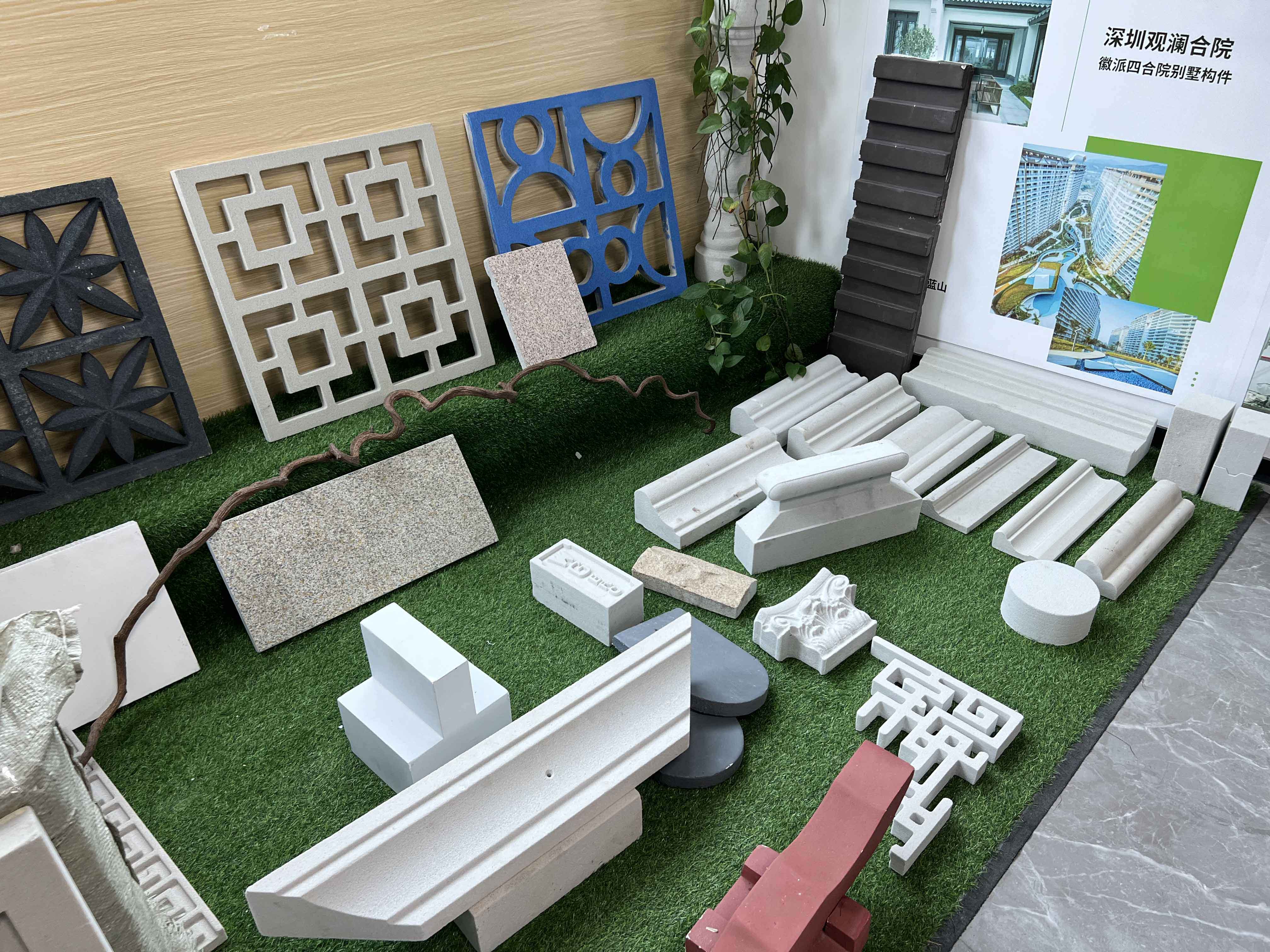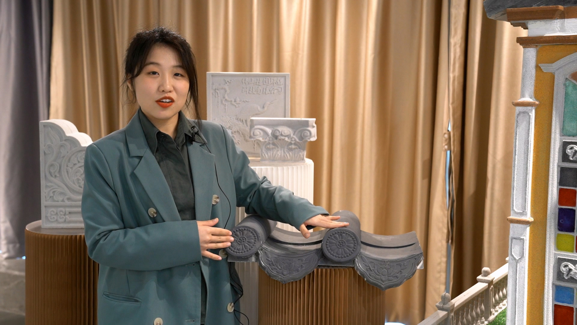 在孵化基地的辦公室內,李丹丹展示了多個由公司自主研發ERC材料製成的建築構件,無論是拱形羅馬柱還是中式仿瓦面屋頂,甚至工藝複雜的鏤空裝飾件都可以由該材料生產而成。這種環保建材以工業固廢及多種輔料為原料,經無害化處理後,再經1200攝氏度高溫燒結成型,不僅達到了A1級防火標準,使用壽命還能與建築主體保持一致。更重要的是,該構件是建築材料也是裝飾材料,用它砌的牆體,無論外牆內牆,都不需要再裝修,顏色和圖案還可以根據客戶的需求進行個性化定製,因此可適用於歐式建築、中式園林、古建修復改造、文旅項目、校園項目等多個應用場景。