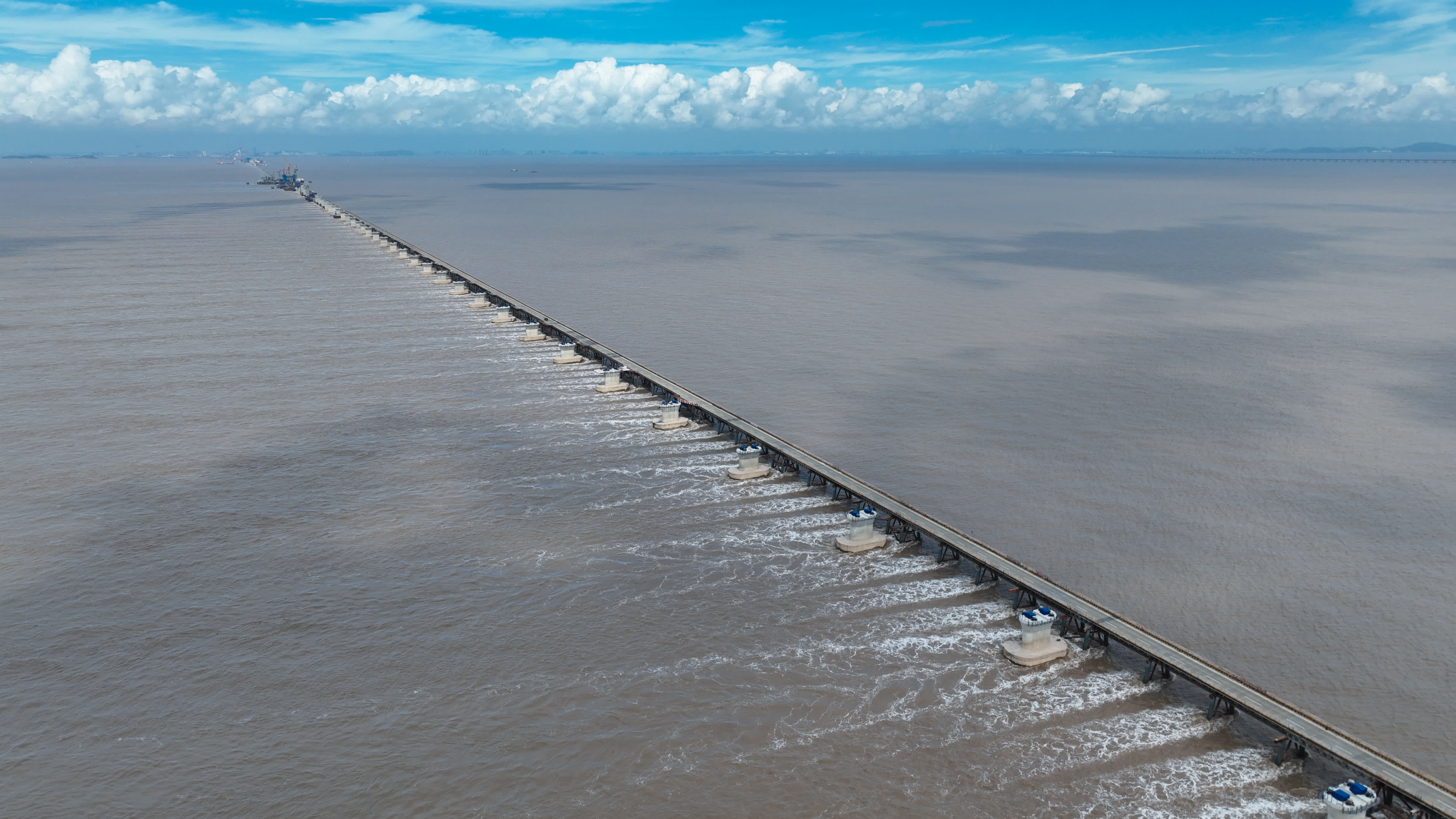 (大公文匯全媒體記者歐陽思柔,通訊員梁秋儀、王昊、向昌文、周璇 武漢報道)東海之濱,世界最長跨海高速鐵路大橋——杭州灣跨海鐵路橋南航道橋已進入中塔柱施工階段;長江下游,世界最大跨度三塔斜拉橋——巢馬鐵路馬鞍山長江公鐵大橋正在進行路面施工;雄安新區,雄忻高鐵進入無砟軌道施工階段,工程順利推進……