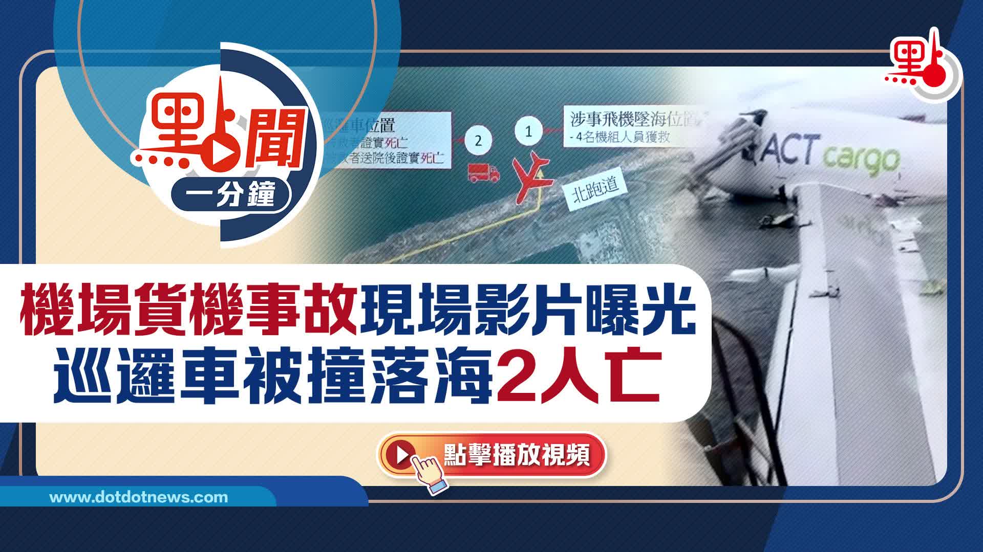 大公文匯全媒體報道,香港國際機場今日(20日)發生奪命航空事故,一架從杜拜抵港的B744貨機(航班編號UAE9788),在北跑道降落後出現偏離情況滑出海面,兩名地勤人員連人帶車被貨機撞落海後不治。事故後現場影片及相片曝光,涉事貨機在海上載浮載沉,機尾朝海。機頭底部穿窿,機身中間斷開,機尾只露出少部分。貨機左邊逃生滑梯彈出,右邊機門亦有打開,但滑梯沒完全打開,4名機組人員在協助下利用逃生滑梯離開機艙。