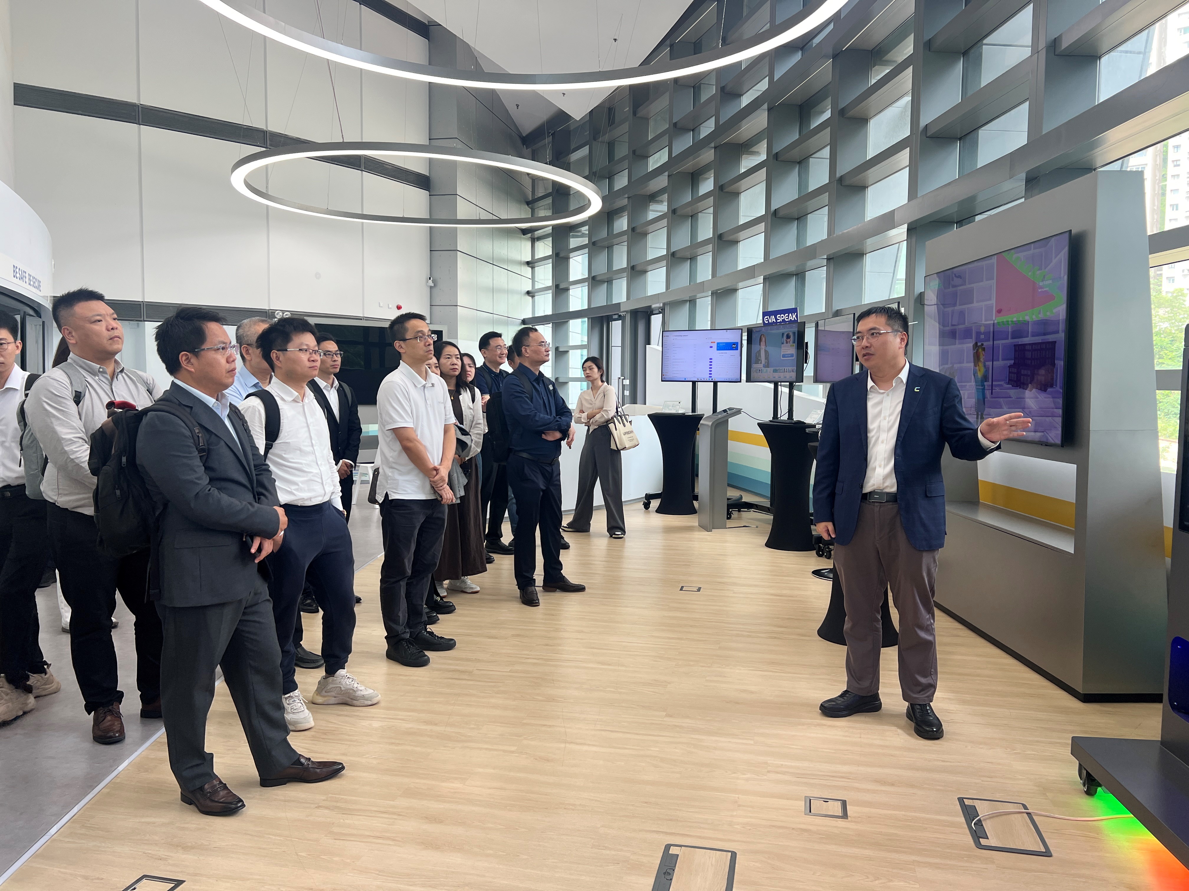 數字辦在會議結束後安排了廣東代表團成員參觀數碼港的數碼科技體驗館,讓他們了解香港的創科企業如何運用AI、區塊鏈及Web3.0等最新前沿科技解決方案及其業務應用。