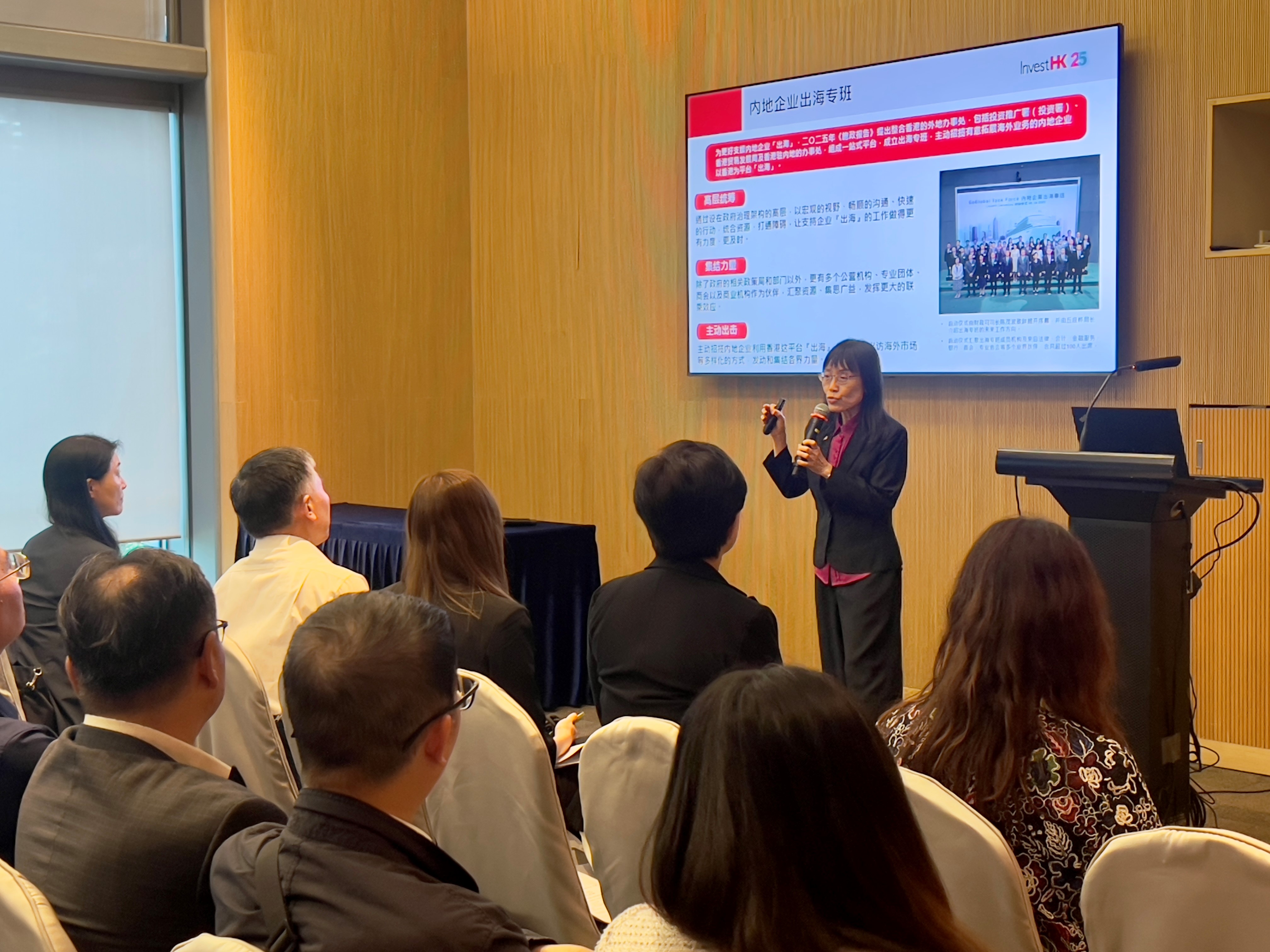 下午,數碼港聯同廣東軟件行業協會舉行了粵港科技企業出海交流會,數字辦、省工信廳、相關部門及粤港創科企業代表均有出席。廣東軟件行業協會在會上介紹了新成立的粵港軟件出海服務聯盟,而投資推廣署和香港貿易發展局則介紹剛成立的內地企業出海專班,積極招攬有意拓展海外業務的內地企業以香港為平台出海。香港提供企業出海服務的機構,包括引進重點企業辦公室、香港生產力促進局及數碼港,分別介紹相關的出海服務。內地兩家專注於人工智能及電子簽名的企業也分享了如何借力香港集資上市,成功拓展業務到海外市場的經驗。