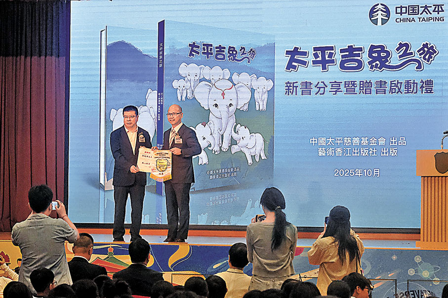 (香港文匯報記者 姜嘉軒)為啟發香港年輕一代關注國家自然生態,中國太平慈善基金會與藝術香港攜手啟動贈書計劃,向全港超過300間學校捐一萬冊《太平吉象之旅》繪本,助力推動教界的生物多樣性教育。昨日在教聯會黃楚標學校舉辦的新書分享暨贈書啟動禮上,繪本作者期望,學生可從故事體會到母親養育之恩、母校教育之恩,並珍惜祖國為每一個人帶來和平穩定。有小學生在閱讀繪本後,形容書中展現的愛與關懷令人感動,也為國家積極保護瀕危動物感到高興。