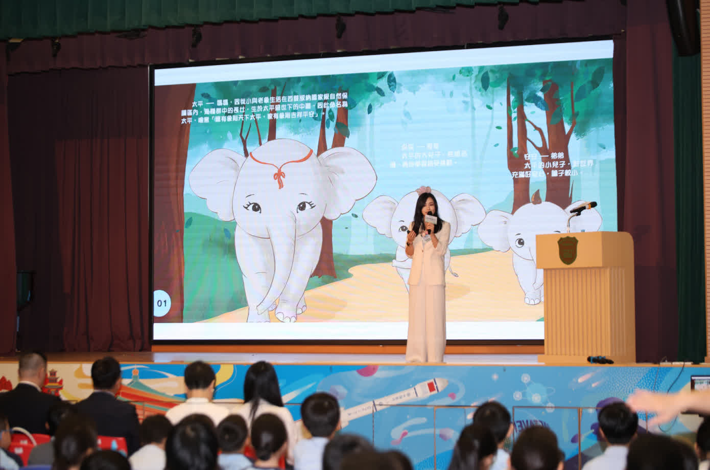 「這一份付出是源自於偉大的祖國母親,無怨無悔地付出,幫助象群安全回家」,繪本作者葉蕙雅昨日分享說,每一個人都有三位母親,包括生母,教會大家知識的母校或老師,「而第三位母親就是偉大的祖國,有賴她提供穩定環境和資源,學生們才能安心在這生活和求學。」她期望學生們都能反思,長大後可如何回饋這片土地,並能體會國家對環境保護和生態環境建設的重視。